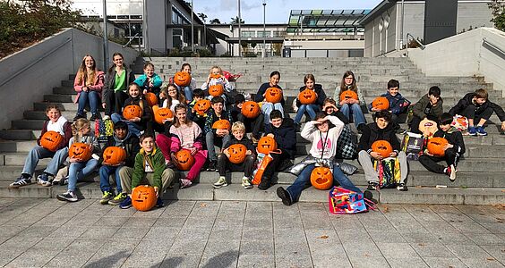 Kürbisschnitzen der Klasse 5D zu Halloween