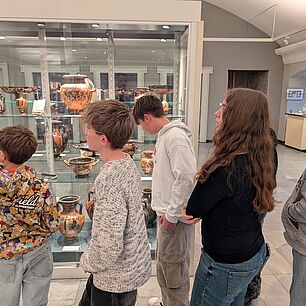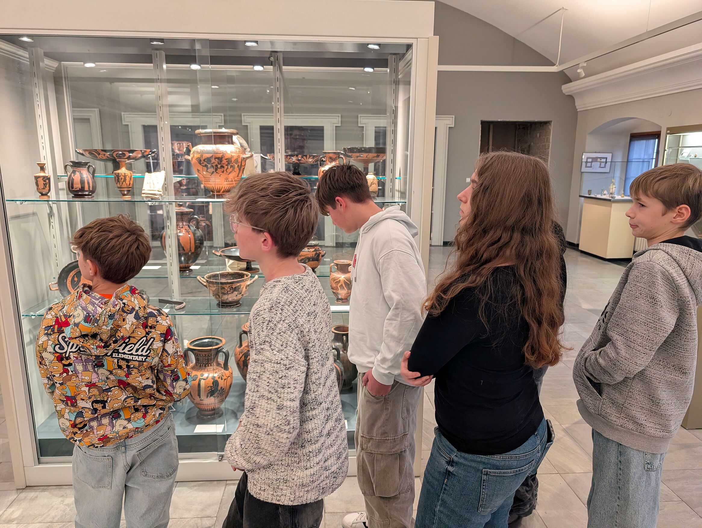Im Anschluss wandten wir uns verschiedenen Schwerpunkten der griechischen Welt zu. Besonders eindrucksvoll war der Bereich zum Sport in der Antike. Anhand von Darstellungen und Objekten wurde sichtbar, welche Bedeutung athletische Wettbewerbe für Erziehung, Identität und gesellschaftliches Leben hatten. Die Verbindung von körperlicher Leistungsfähigkeit, religiöser Praxis und öffentlicher Anerkennung wurde für die Schülerinnen und Schüler anschaulich nachvollziehbar.