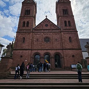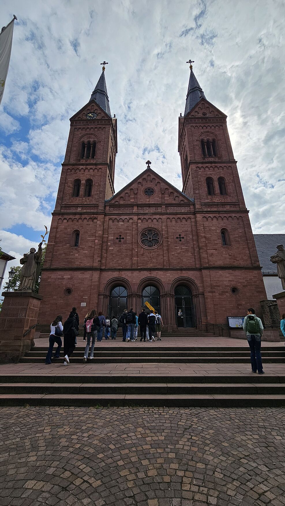 Am 8. Juli 2025 brachen die Lateiner der 10. Klassen bei schönstem Ausflugwetter vom Kahler Bahnhof zu Fuß nach Seligenstadt auf. Dort wurden sie - wie schon in den vergangenen Jahren - von Frau und Herrn Post erwartet, die ihre Führung vom Marktplatz durch enge Gässchen über die Einhardbasilika bis zum Kräutergarten mit den wichtigsten Daten der Historie und mit netten Anekdoten gestalteten. Durch die Lektüre von Einhards "Vita Karoli Magni" kannten die Schülerinnen und Schüler zwar die meisten Fakten und einige Geschichten, erhielten durch die Begegnung vor Ort aber natürlich einen nachhaltigen Eindruck - und der Lateinunterricht wurde als bedeutsam erfahren ...