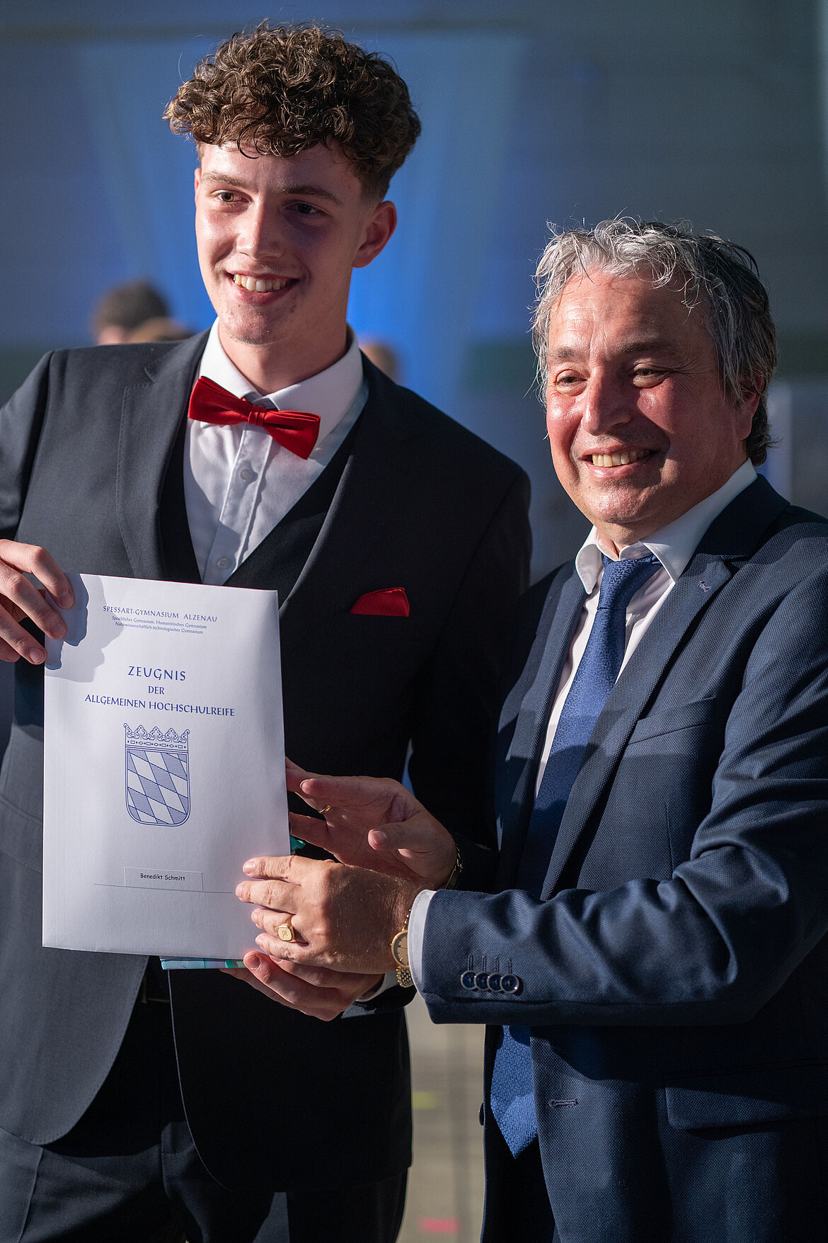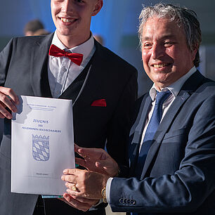 OStD Carlo Ribeca gratulierte den beiden im Rahmen der Abiturfeier.