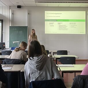 Auch wenn der Eintritt in das Berufsleben in der 11. Klasse noch sehr weit entfernt erscheint, so lohnt es sich dennoch, frühzeitig die wichtigsten Grundlagen eines Bewerbungsverfahrens kennenzulernen, nicht zuletzt für mögliche Nebenjobs und Praktika. Erfreulicherweise konnten wir erneut Frau Noa Melina Peer von der AOK Direktion Aschaffenburg als Referentin gewinnen, die am 9. Dezember 2025 einen Workshop zum Thema »Werde Bewerbungsprofi« für die P-Seminare »Kulissenbau« und »Kostüme und Maske« abhielt. Während der gut zweistündigen Veranstaltung erfuhren die Schülerinnen und Schüler alles Wissenswerte über die Erstellung von Bewerbungsunterlagen sowie über den Ablauf eines Bewerbungsverfahrens. Dabei brachte Frau Peer neben anschaulichen Materialien auch viele praxisnahe Beispiele aus ihrer eigenen Berufserfahrung mit und konnte so die zahlreichen Fragen der Schülerinnen und Schüler umfassend beantworten. Im zweiten Teil des Workshops durften sich die Teilnehmer selbst an kurzen Bewerbungsgesprächen versuchen und ausgewählte Teile eines Einstellungstests ausfüllen. Hier galt es nicht nur mögliche Fallstricke zu beachten, wie etwa die Frage, wer wem zuerst die Hand zur Begrüßung reichen darf, sondern es entstanden auch interessante Erkenntnisse: »Was? Kommasetzung brauche ich im späteren Leben doch noch?“