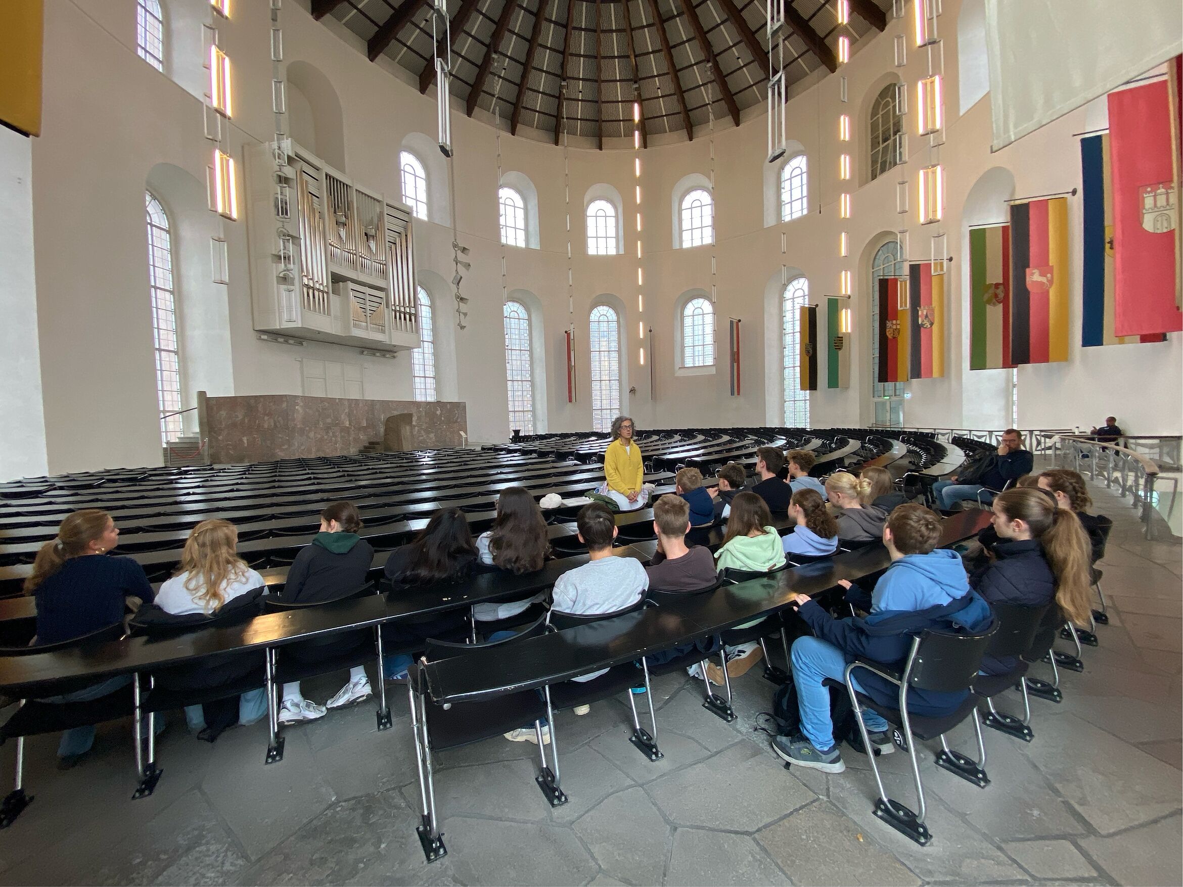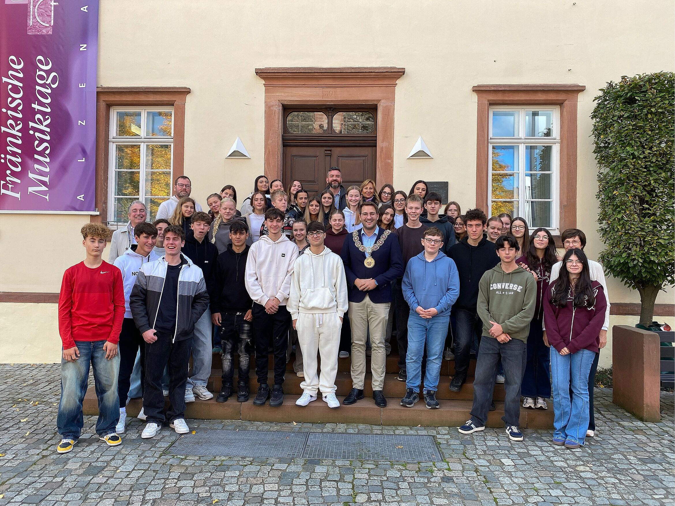Am Dienstag hieß es nochmal: Schule, aber mit Spaß! Nach einer kurzen Unterrichtseinheit präsentierten die Gruppen ihre Projektarbeiten – mit viel Kreativität, Humor und zahlreichen Gesten. Danach stand der offizielle Teil auf dem Programm: Der Bürgermeister von Alzenau empfing die Gruppe im Rathaus, erzählte von der Stadtgeschichte und führte sogar persönlich durch die Burg Alzenau. Für viele ein echtes Highlight – und natürlich eine tolle Fotokulisse.