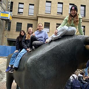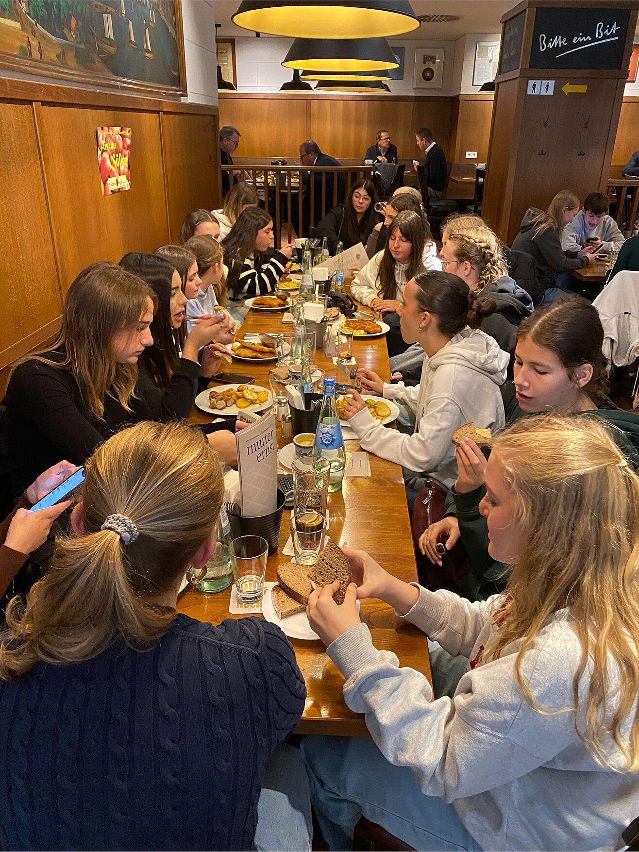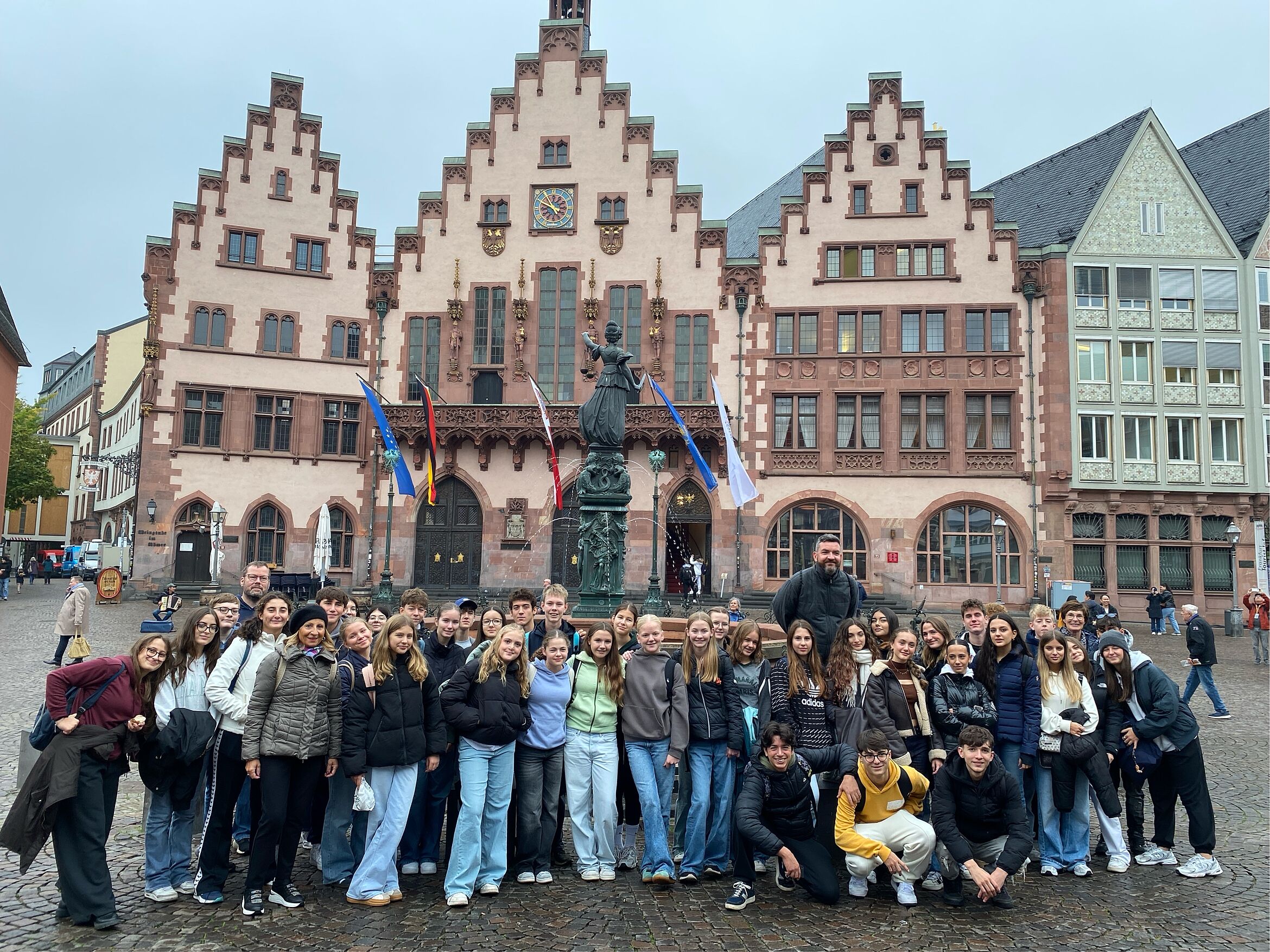 Montag der 13. – aber kein Unglück in Sicht! Ganz im Gegenteil: Frankfurt zeigte sich von seiner besten Seite. Nach zweisprachigen Stadtführungen (mit lebhaften Übersetzungsversuchen à la „Wie sagt man nochmal ‘Börse’ auf Italienisch?“) gab’s ein zünftiges Mittagessen bei Mutter Ernst. Danach ging’s auf große Fahrt – mit der Primuslinie über den Main, vorbei an Skyline und zahlreichen Selfiemotiven. Der Nachmittag war frei – und wurde natürlich für Shoppen, Eisessen und Sightseeing genutzt.