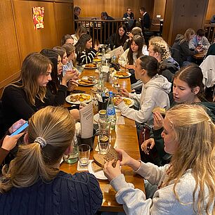 Der Tag startete mit einer Unterrichtsstunde zum Reinschnuppern. Danach arbeiteten die gemischten Gruppen am Austauschprojekt, einer Präsentation über die Unterschiede zwischen Deutschland und Italien - wobei schnell klar wurde: Der größte Unterschied ist vermutlich, dass in Deutschland das Abendessen viel zu früh stattfindet.
