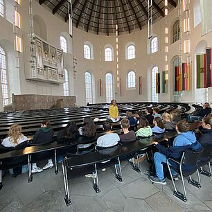 Am Nachmittag ging’s nach Aschaffenburg, wo sich alle beim Pompejanum wie kleine Archäologen fühlten. Besonders originell: Die Vorstellung des Hauses erfolgte durch ein inszeniertes Gespräch römischer Kinder, das die italienischen Schüler selbstständig - ganz ohne Führer - vorlasen. So wurde das antike Pompeji plötzlich lebendig, und man hatte fast das Gefühl, den Kindern aus der Antike im Alltag zuzusehen. Ein römischer Ausflug in die Vergangenheit, ganz im Sinne europäischer Freundschaft!