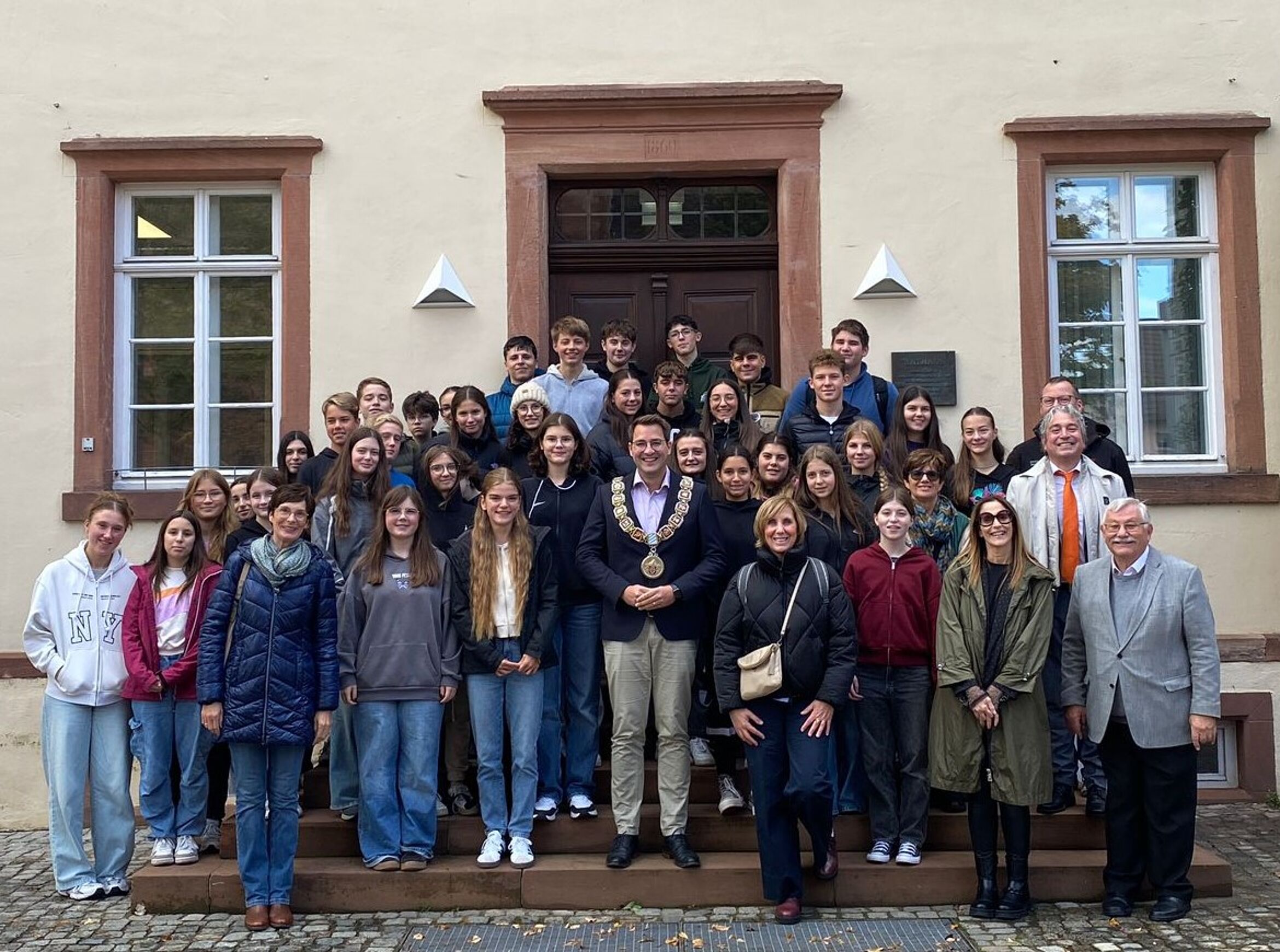 Die jungen Gäste und ihre deutschen Austauschpartnerinnen und -partner wurden von Schulleiter Carlo Ribeca und der Schulleiterin aus Viterbo, Dr. Clara Vittori, ihren Kolleginnen Carla Pinti und Patrizia Moretti sowie Christine Bax und Dr. Philipp Böhme begleitet und im Sitzungssaal empfangen. Bürgermeister Stephan Noll und sein Amtskollege Helmut Schuhmacher hießen die italienische Delegation herzlich willkommen und lobten das Engagement der beteiligten Schulen, die den Austausch seit zwei Jahren erfolgreich organisieren. In seiner Ansprache hob Herr Noll die Bedeutung des internationalen Austauschs hervor. Ebenso betonte Herr Ribeca, dass solche Begegnungen ein wichtiger Beitrag zur Verständigung zwischen den Kulturen seien und den europäischen Zusammenhalt stärken.