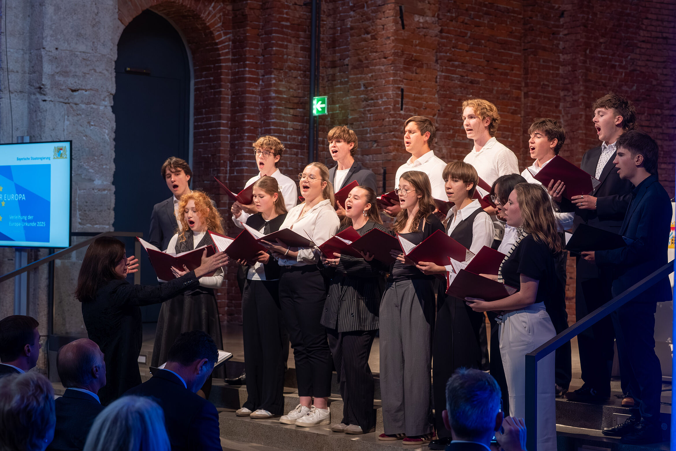 In München fand am 20.10.2025 die feierliche Verleihung der Europa-Urkunde 2025 statt, bei der acht bayerische Schulen für ihr herausragendes Engagement im europäischen Bildungsbereich ausgezeichnet wurden. Die geehrten Schulen überzeugten durch vielfältige Projekte, die den europäischen Gedanken lebendig machen und Schülerinnen und Schüler dazu ermutigen, über Grenzen hinweg zu denken und zu handeln.