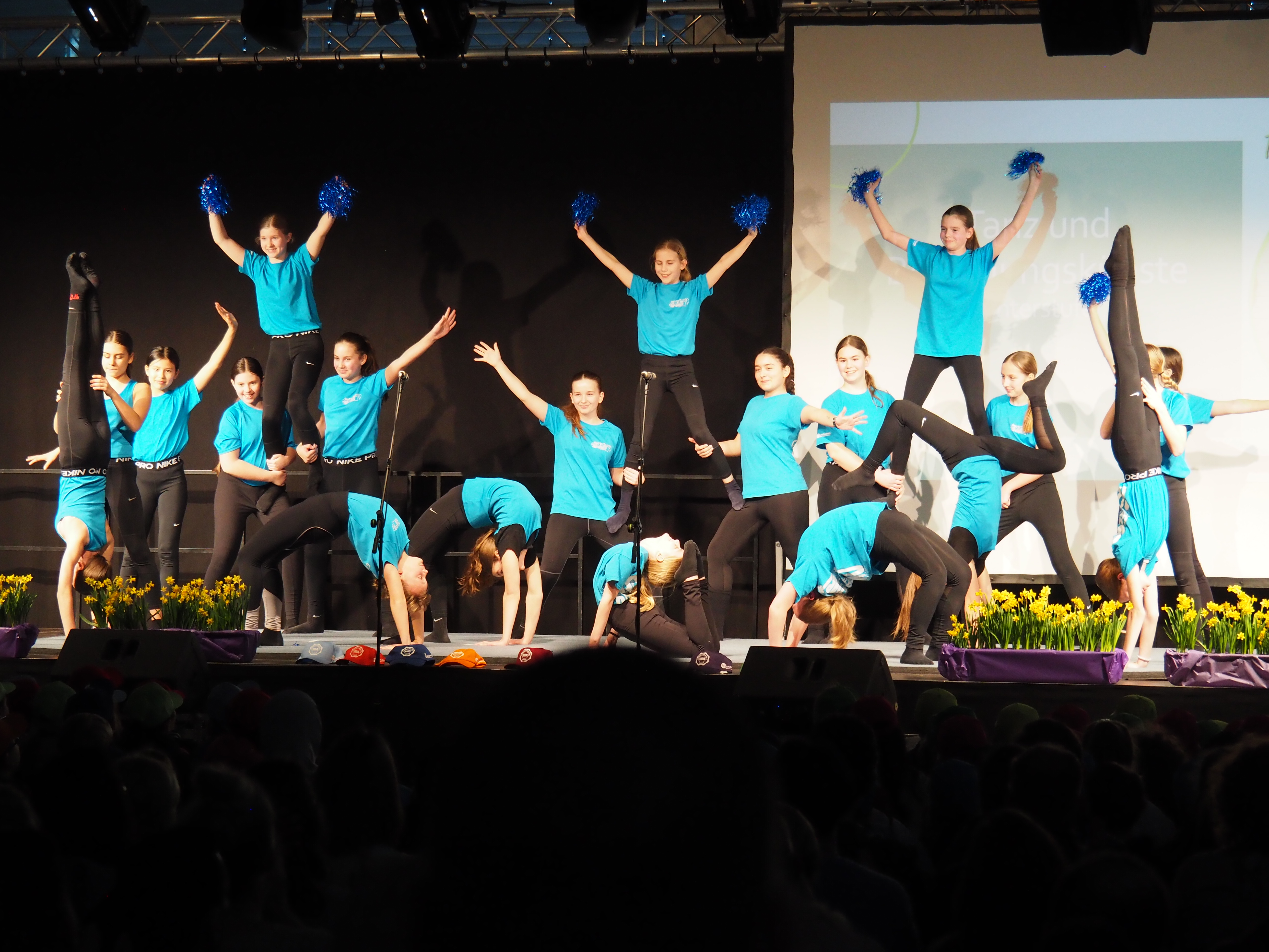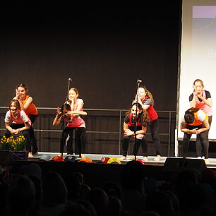 Der Abend begann schwungvoll in der Sporthalle. Die Bläserklasse, der Unterstufenchor sowie die Bewegungskünste sorgten für ein abwechslungsreiches und mitreißendes Eröffnungsprogramm. Staunend erlebten die Gäste, was Schülerinnen und Schüler bereits in den unteren Jahrgangsstufen alles lernen und können: Das Bläserensemble begeisterte mit „We will rock ou“, der Chor sang das eigens für das SGA geschriebene Lied „Wir am SGA“ und machte damit hör‑ und spürbar, wie bunt und vielfältig die Schule ist. Eine beeindruckende Tanz‑ und Turneinlage der Mädchen aus den 5. und 6. Klassen zeigte akrobatische Elemente, Körperbeherrschung und Teamgeist – belohnt mit tosendem Applaus. Schon zu diesem Zeitpunkt wurde deutlich: Am SGA werden Talente entdeckt, gefördert und entfaltet. Die Schülerinnen und Schüler erleben hier eine Schule, die ihnen Raum gibt, sich auszuprobieren und über sich hinauszuwachsen.