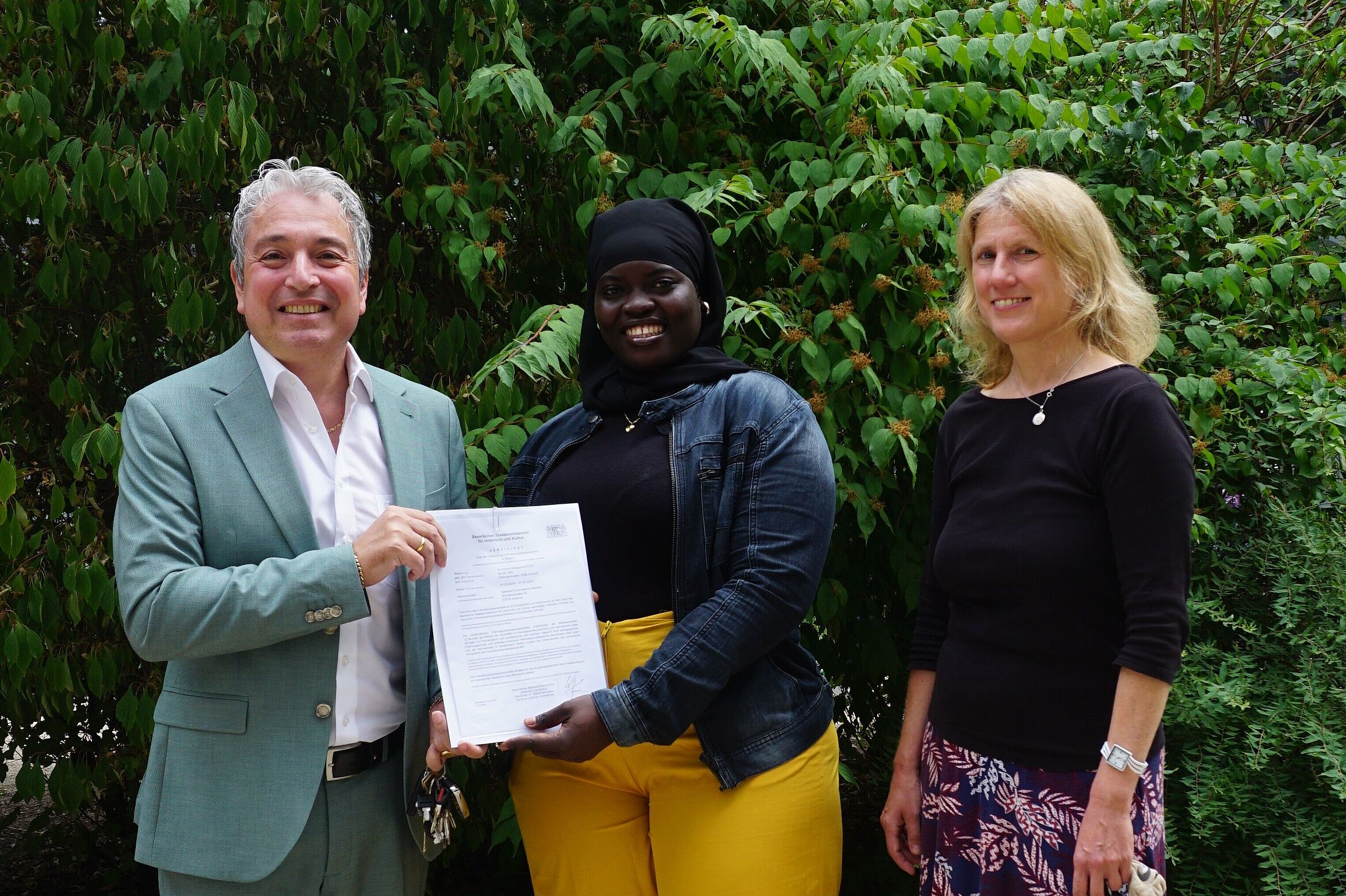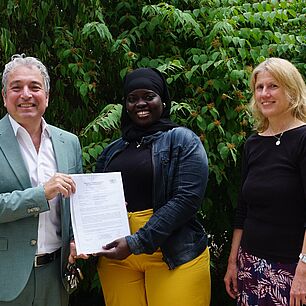 Wieder einmal erleben wir, wie schnell die Zeit vergeht: So neigt sich das Jahr, in dem uns Noutiama Soro als Fremdsprachenassistentin in Französisch tatkräftig unterstützt und den Unterricht auf vielfältige Art und Weise bereichert hat, bereits wieder seinem Ende zu. Als Würdigung ihres engagierten Einsatzes erhielt Noutiama Soro das Zertifikat des Bayerischen Staatsministeriums für Unterricht und Kultus, das der Schulleiter, Herr Ribeca, in Anwesenheit der Fachschaftsleiterin für Französisch überreichte.