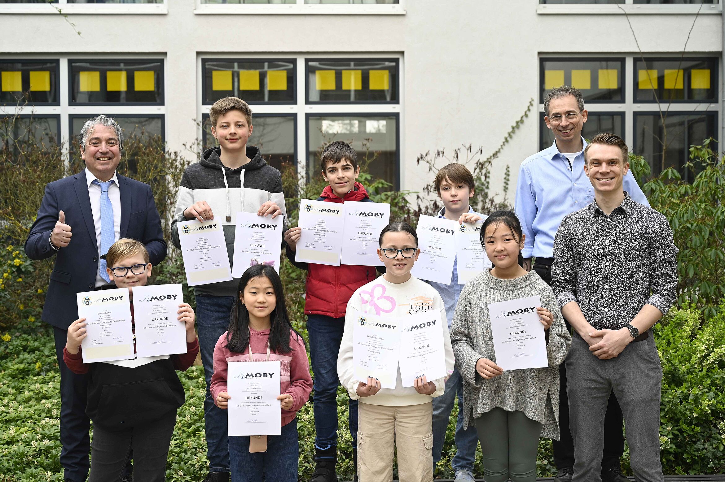 Der Schulleiter OStD Ribeca zeigte sich über den großen Wettbewerbserfolg sehr erfreut und gratulierte den Preisträgern ebenso wie die Betreuer des Wettbewerbs an der Schule.