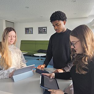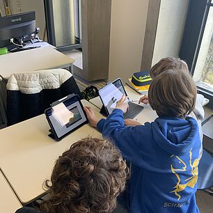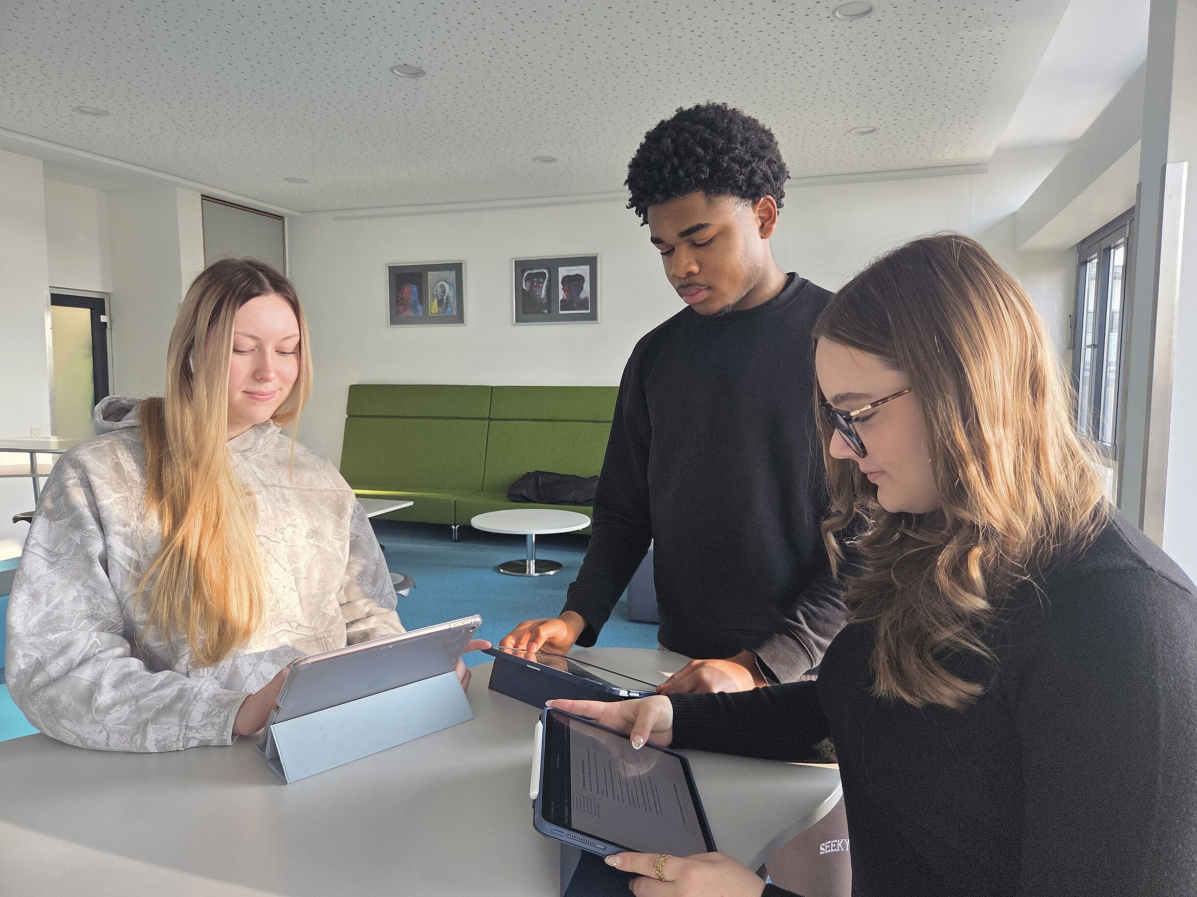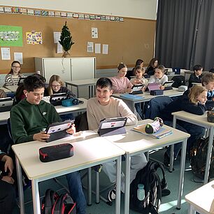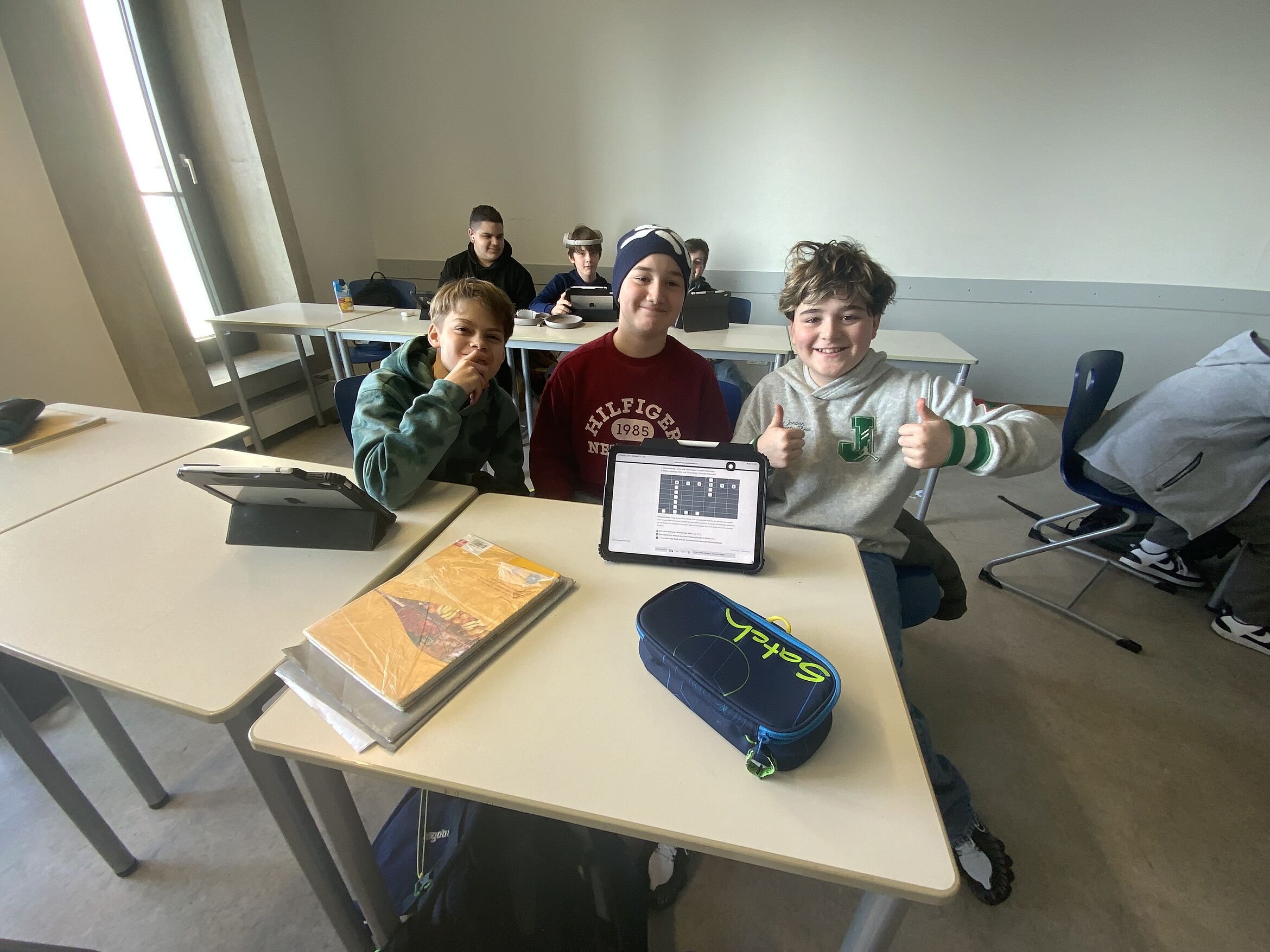 7de, 8a, 8c, 9a, 10a, 10d und der Kurs der Oberstufe an die Arbeit. In kleinen Teams bearbeiteten die Schülerinnen und Schüler online eine Vielzahl abwechslungsreicher Aufgaben rund um Frankreich, Europa und die französischsprachige Welt. Gefragt waren nicht nur Sprachkenntnisse, sondern auch geografisches Wissen, kulturelles Interesse, logisches Denken und vor allem Teamgeist. Immer wieder wurde diskutiert, geraten, gelacht – und gemeinsam nach der besten Lösung gesucht. Die Fotos zeigen einzelne Gruppen bei ihrer engagierten Arbeit. Bravo à toutes et à tous les élèves !