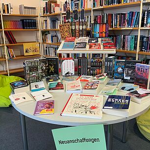 Dann kommt zu uns in die Schülerbibliothek und besorgt euch neuen Lesestoff. Wir freuen uns, wenn die neu gekauften Bücher ihre Leserinnen und Leser finden!