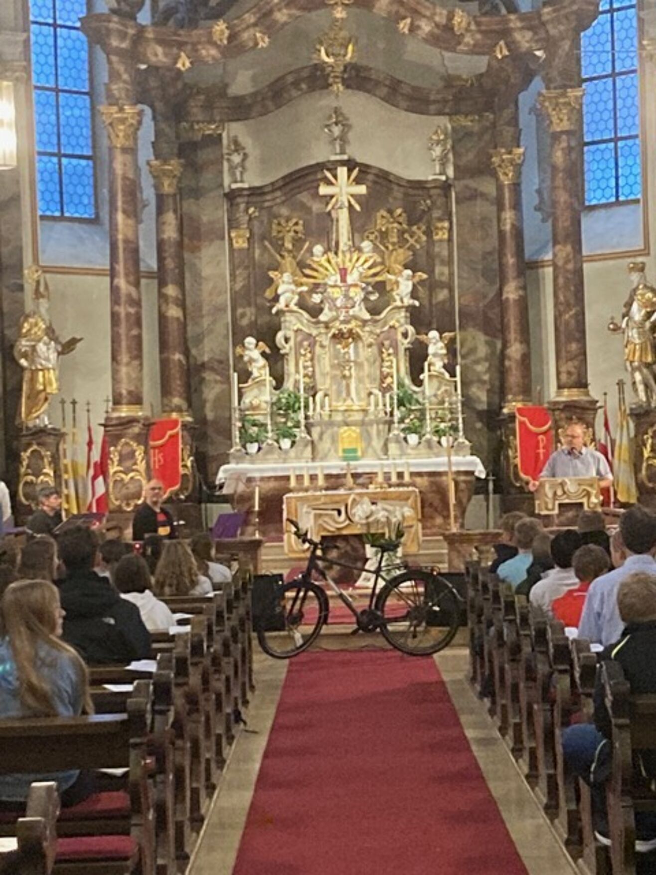 Vor einigen Monaten gab es in den Tageszeitungen die große Schlagzeile: „Die Tour rollt wieder!“ Gemeint war die „Tour de France“, das große Profiradrennen, das durch ganz Frankreich gefahren wird. Der Anfangsgottesdienst am SGA für die 6. – 12. Klassen stand unter dem Thema: „Die Tour rollt wieder - gemeinsam durch das neue Schuljahr“, passend vor dem Hintergrund, dass jeden Morgen viele Schülerinnen und Schüler sowie Kolleginnen und Kollegen den Berg hoch zur Schule radeln, um dann den letzten Anstieg zur Fahrradhalle zu bewältigen. Am SGA versuchen verschiedene Teams, gemeinsam die „Lernstraßen“ der Schule zu bezwingen, mit all den Freuden und Leiden einer „Tour“: Berge der Anstrengung, Täler der Ruhe und Entspannung, Alleingänge und Massensprints, Windschattenfahren und Endspurts. Auf dieser Tour dürfen wir uns von Gott begleitet fühlen. Eine wesentliche Botschaft des christlichen Glaubens ist ja: „Gott ist mit uns“. Unsere Entwicklungsschritte, unser ganzes Leben stehen unter dieser Zusage.