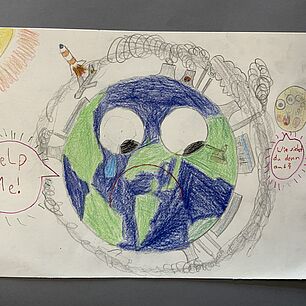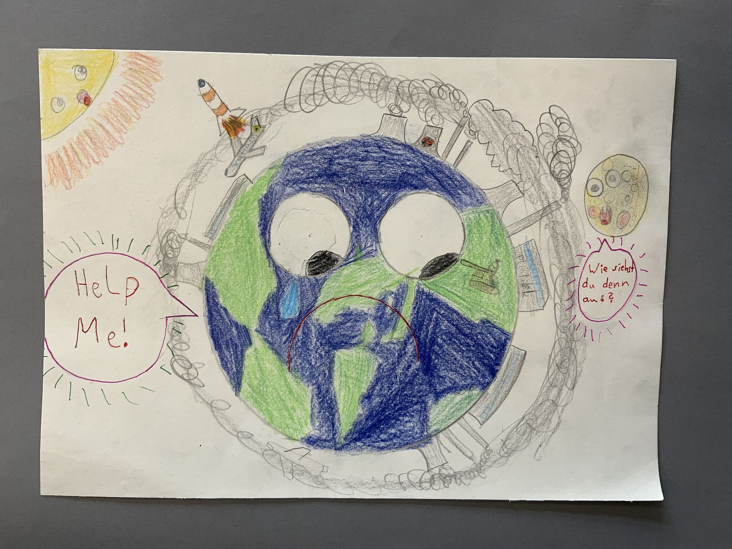 In der vergangenen Woche nahmen unsere Schülerinnen und Schüler der 5a und 5c im Rahmen des Kunstunterrichts an einem Projekt mit dem Bayerischen Rundfunk teil. Hierbei drehte sich alles um das Thema „Klimawandel“. Derzeit wird eine neue Sendung, „The Dictionary of Climate Crisis“, ein internationales Kinderlexikon, entwickelt. Hierbei sollen grundlegende Begriffe rund um das Thema Klimawandel und Klimakrise anschaulich für Kinder erklärt werden. Aus dem Kinderlexikon sahen die Schülerinnen und Schüler fünf unterschiedliche kleine Videos aus verschiedenen Ländern. Neben Wissensfragen durften sie als Expertinnen und Experten Rückmeldung zu den verschiedenen Stilen der Kurzvideos geben. Abschließend zeichneten oder malten die Schülerinnen und Schüler ein Bild von ihrem Lieblingsausschnitt aus den Videos. Das Projekt wurde im Anschluss an ein eigenes kleines Stop-Motion-Filmprojekt der beiden fünften Klassen durchgeführt. Daher waren die Schülerinnen und Schüler kritisch und gaben den Filmemachern über ihre Zeichnungen sogar einige Verbesserungsmöglichkeiten mit.