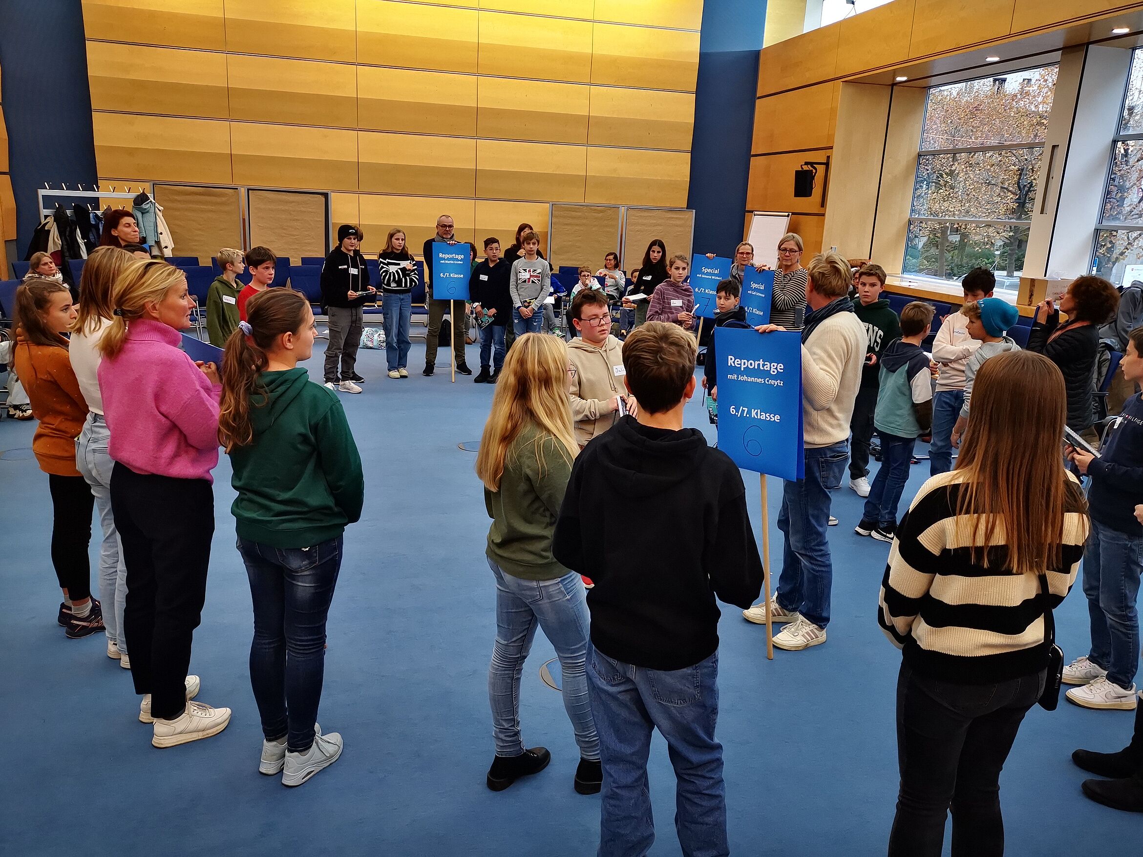 2.11.2023 8:45 Uhr – Bahnhof Kahl. Für einen Feiertag noch verhältnismäßig früh und vor allem kalt. Aber für 5 Schülerinnen und Schüler der Radio und Film IFA und Frau Stephan vom Spessart-Gymnasium beginnt hier eine Reise, auf die sich alle schon sehr lange gefreut hatten. Wie auch letztes Jahr ging es für die Gruppe im Rahmen der TurnON Projektes des BR zum Radioworkshop nach München. Nach einem kurzen Chaos durch einen Ersatzzug kommt die Gruppe mit geringer Verspätung in München an und macht sich auf dem Weg zum BR-Funkhaus in der Münchener Innenstadt. Dort angekommen ging es zunächst in den großen Sitzungssaal, wo es ein paar Vorstellungsrunden gab und auch das Ziel des nächsten zwei Tage bekannt gegeben wurde: In verschiednen Workshops erstellt jeder Jahrgang eine eigene Radiosendung mit allem Drum und Dran: Nachrichten, Reportagen, Moderation, Musik und vielem mehr. Ich persönlich bin ein totaler News-Junkie und habe mich daher für den Nachrichtenworkshop entschieden. Wir gingen mit einer Redakteurin der BR-24-Inforadio-Redaktion in ein für den Workshop umfunktioniertes Aufnahmestudio. Dort gab es erstmal ein paar gedruckte Agenturmeldungen, die wir zu zweit nach Wichtigkeit sortieren sollten. Anschließend ging es darum, aus einer erzählten Geschichte eine Meldung zu schreiben. Nach diesen Übungen ging es an die Vorbereitung der Sendung für den Donnerstag. Wir durften mit den Programmen der Nachrichtenredaktion arbeiten, die uns einen Einblick in die Nachrichtenagenturen gaben. Aus diesen Meldungen der Agenturen entstand eine Sendung mit zwei Hauptmeldungen, 3 Kurzmeldungen und einem Experteninterview. Ich habe am Ende eine Meldung über die Waffenruhe in Nahost und den Haushalt für 2024 verfasst. Mittlerweile ist es Donnerstag – kurz vor der Mittagspause. Die Meldungen werden nochmals überarbeitet. Die übrigen Gruppenmitglieder feilen noch an ihren Reportagen, Moderationstexten und Überleitungen zwischen den einzelnen Teilen der Sendung. Dann noch schnell zu Mittag essen und los ging es mit der Sendung. Jeder Jahrgang trug seine eigene Sendung vor. Es gab Reportagen zum Olympia-Zentrum, zu verschiedenen Sportarten wie Eishockey und Eiskunstlauf, Interviews, den ein oder anderen gelungenen (Flach)Witz und natürlich Musik, die die jeweilige Gruppe nach persönlichem Geschmack auswählen durfte. Nach jeder Sendung gab es Feedback von den Experten, den Lehrkräften, aber auch den anderen Schülerinnen und Schülern. Die Sendung der höheren Jahrgangsstufen war ein voller Erfolg und ist pannenfrei abgelaufen. Danach ging es wieder ziemlich schnell heimwärts. Wieder mit dem Zug zurück und nach Hause. Und so gingen zwei supertolle Tage zu Ende, die sich deutlich länger anfühlten.