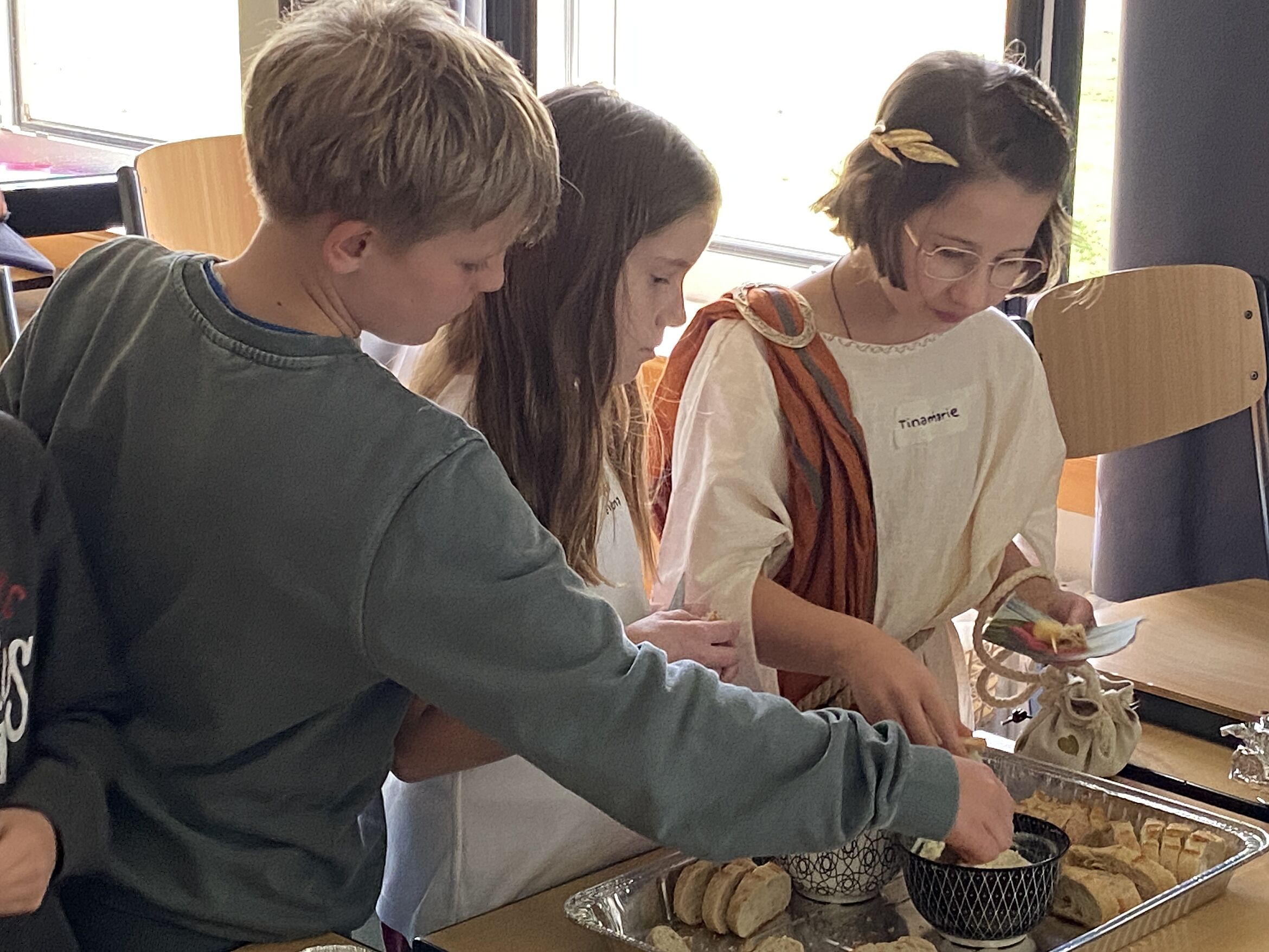 Mit viel Engagement hatten die Schülerinnen und Schüler verschiedene Stationen vorbereitet, an denen die Kinder, die sich zum Teil sogar als Römer und Römerinnen verkleidet hatten, die römische Kultur spielerisch kennenlernen konnten. Ob „Gladiatoren – Helden der Arena“, „Römersnack“ oder der „Outfit-Check: Toga oder Tunika?“ - die jungen Besucher tauchten mit Neugier und Begeisterung in das Alltagsleben der Römer ein.