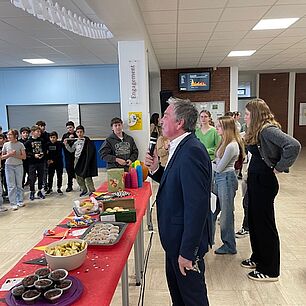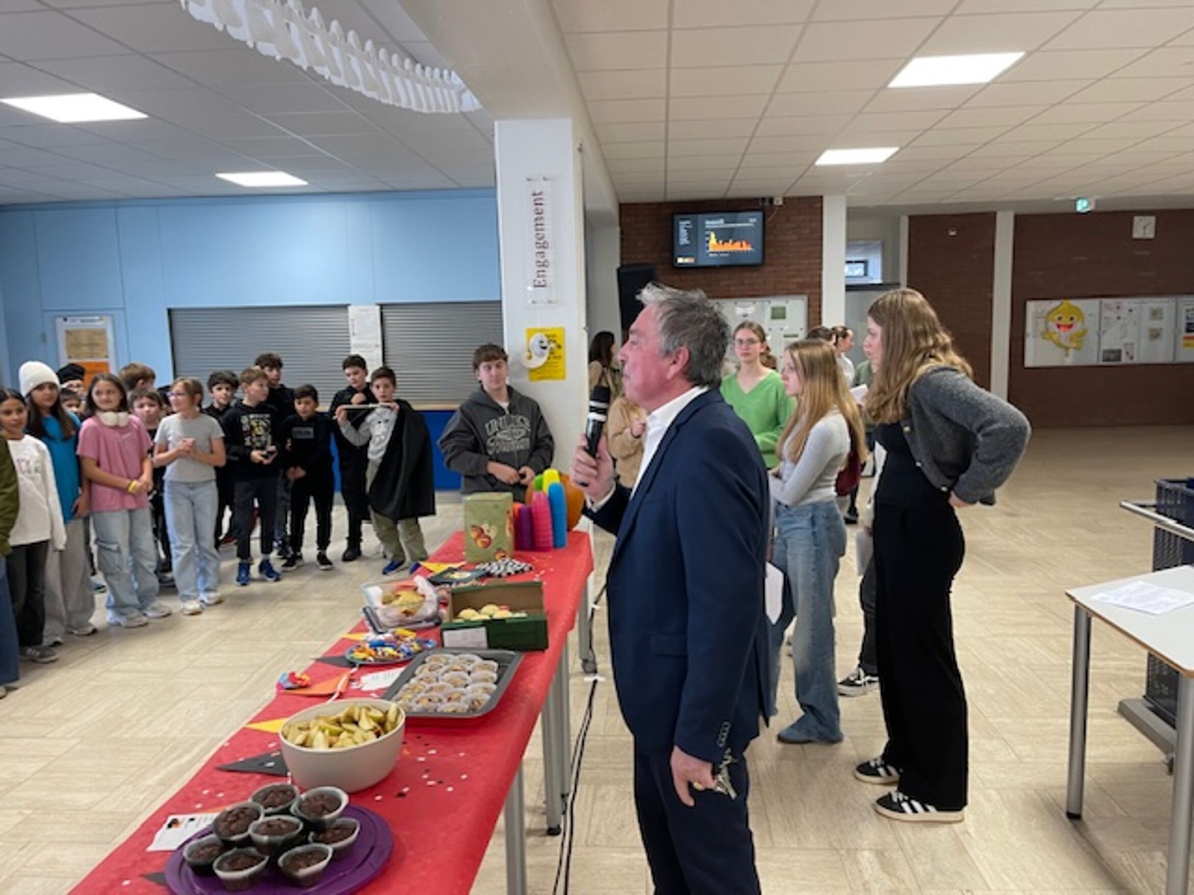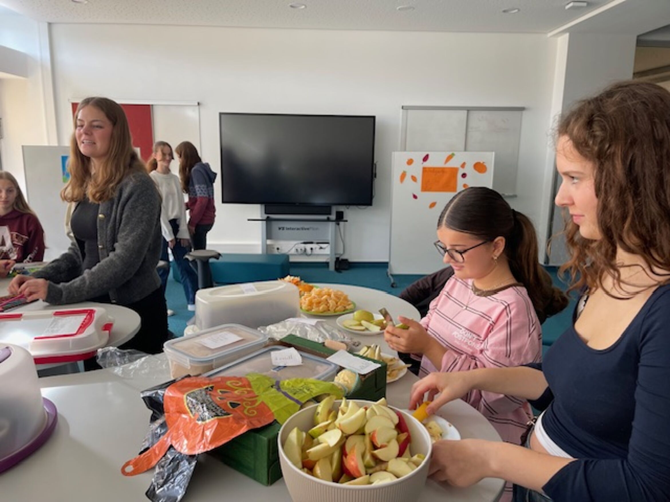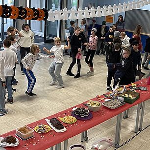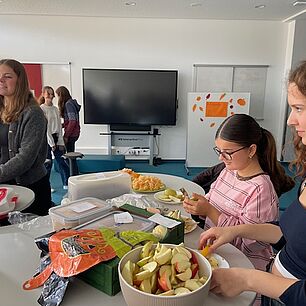 Nicht nur Spiel und Spaß stand auf dem Programm, sondern auch ein tolles Angebot an Essen und Trinken. Die Tutorinnen und Tutoren haben die Kinder mit verschiedenen Obstsorten, selbst gebackenen Kuchen und Apfelsaft aus regionalem Anbaugebiet überrascht. Denn bekanntlich muss auch der Teamgeist durch Energie gestärkt werden!