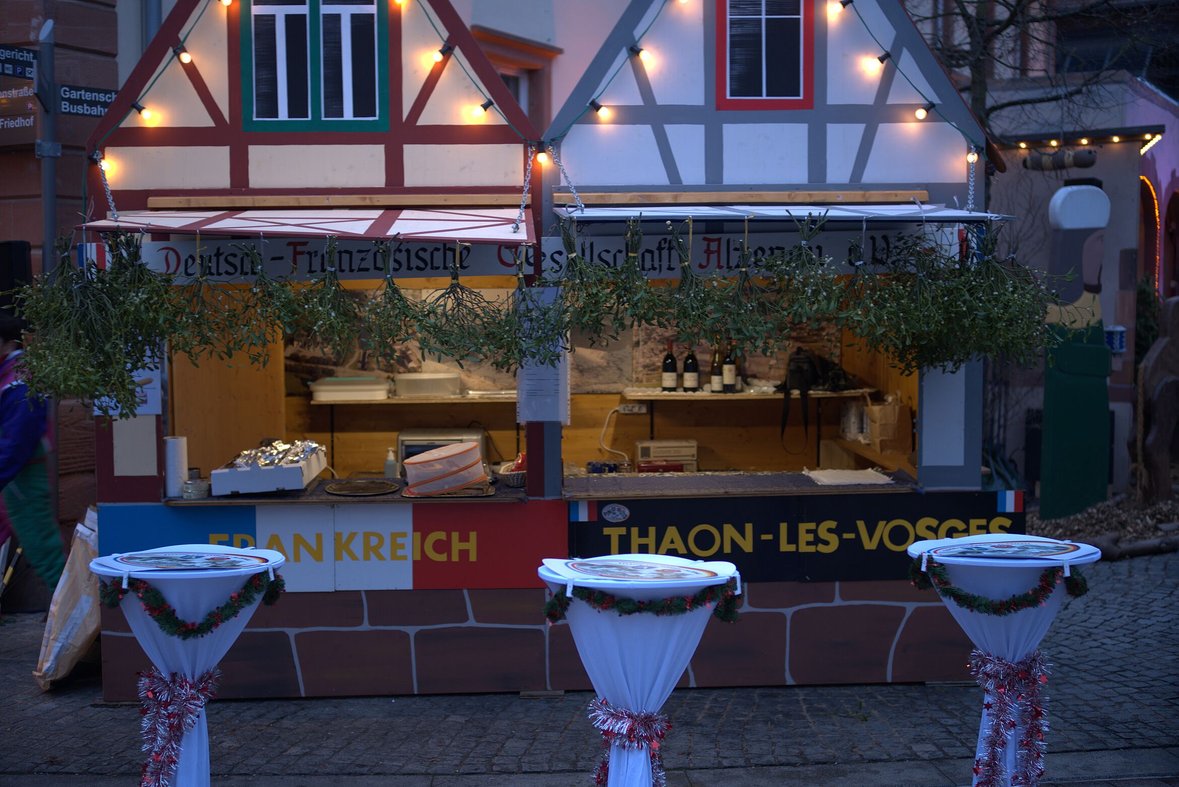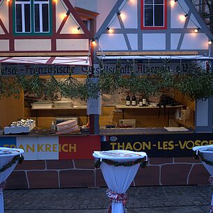 Aus der Partnerstadt Thaon-les-Vosges waren wieder mehrere Französinnen und Franzosen angereist. Sie brachten leckere Spezialitäten mit, wie z.B. Quiches, Eclairs und Pasteten, die reißenden Absatz fanden.