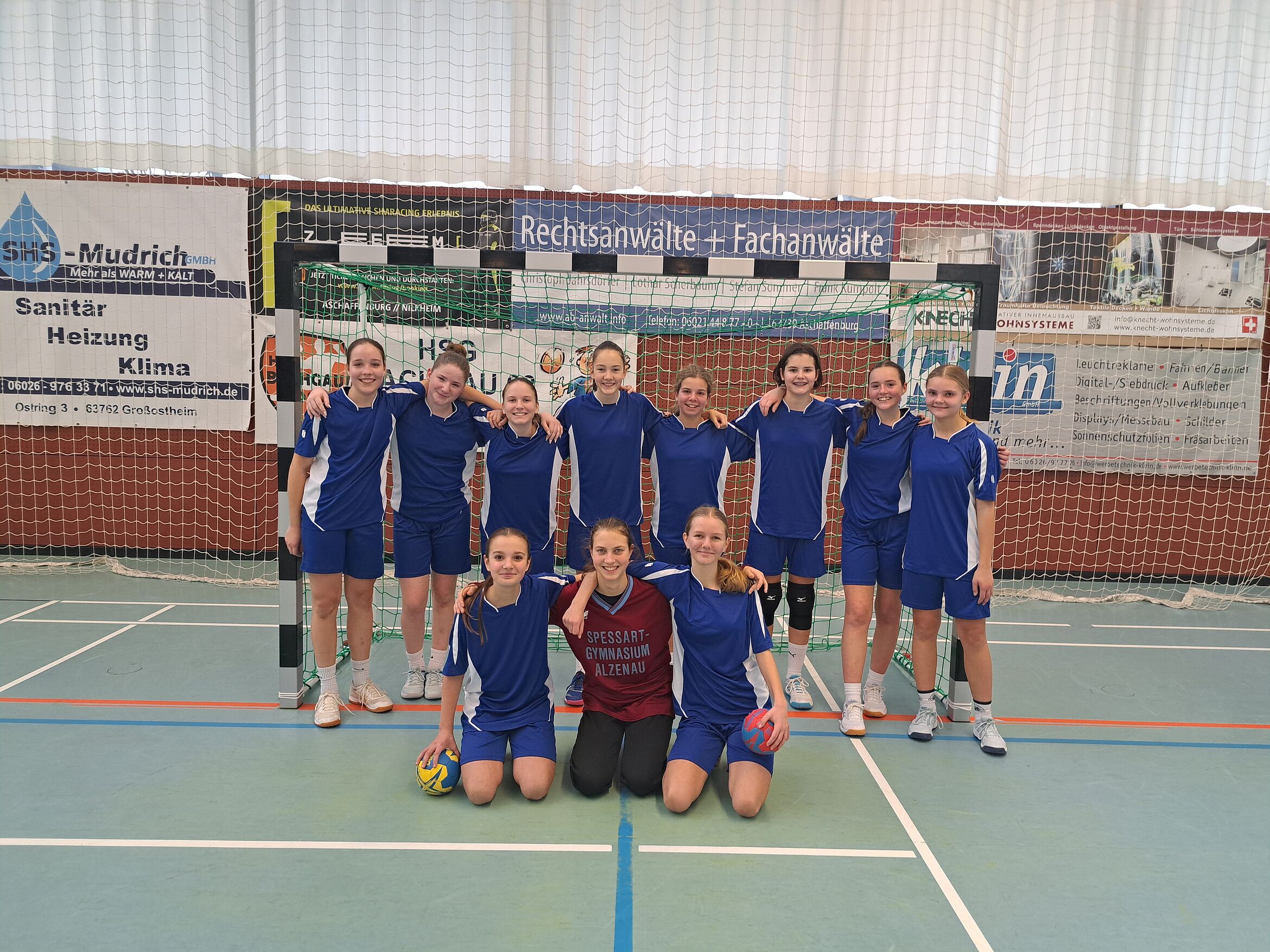 Die Mädchenmannschaft des Spessart-Gymnasiums erreichte durch einen ungefährdeten 43 zu 9 Sieg gegen die Mannschaft der Realschule Hösbach das Regionalfinale in der Wettkampfklasse III/1. Nachdem beide Mannschaften das Spiel mit zwei fulminanten Pfostentreffern starteten, zeigte sich doch recht schnell, dass das SGA-Team insgesamt besser besetzt und sehr gut eingespielt war. Die spielerische Überlegenheit konnte Schritt für Schritt auch in Tore umgesetzt werden, so dass das Spiel bereits zur Halbzeit entschieden war. Der gegnerischen Mannschaft muss trotz oder gerade wegen der hohen Niederlage ein großes Lob ausgestellt werden, da sie bis zur letzten Sekunde vollen Einsatz zeigte. Nun geht es für die Mannschaft des Spessart-Gymnasiums am 7.12.23 weiter mit dem Ziel, das Unterfrankenfinale zu erreichen, welches man letztes Jahr gewinnen konnte.