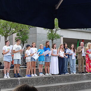 Das Sommerfest am SGA ist traditionell einer der Höhepunkte am Ende des Schuljahrs. So auch in diesem Jahr. An einem wunderschönen Sommerabend traf sich die Schulfamilie auf dem Schulgelände zu einem fröhlichen Fest, bei dem Schülerinnen und Schüler für besondere Leistungen geehrt wurden, die 5. Klassen ihren Staffellauf austrugen und verschiedene Auftritte Unterhaltung boten. Ein Fußballspiel und ein Volleyballturnier von Schülerteams und einem Lehrerteam waren weitere Attraktionen. Die Lehrer-Band war wieder der musikalische Höhepunkt und sorgte bis in den späten Abend für hervorragende Stimmung.
