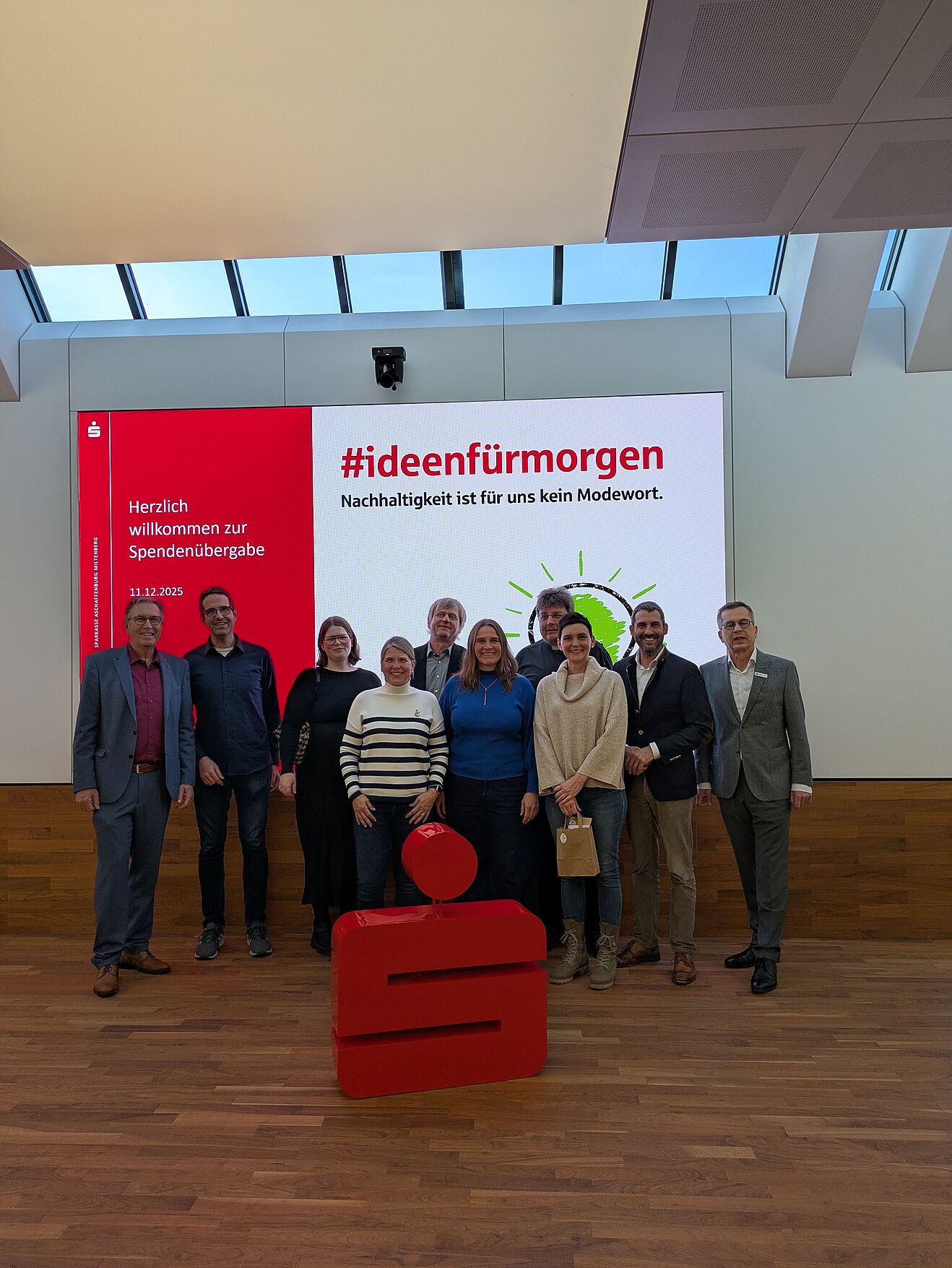 Am 11. Dezember 2025 durfte der Förderverein des Spessart-Gymnasiums mit großer Freude eine großzügige Unterstützung der Spendeninitiative #ideenfürmorgen der Sparkasse Aschaffenburg-Miltenberg entgegennehmen. Die Spende fließt in den Bau und die Umsetzung der künftig entstehenden Grünen Klassenzimmer – Lernorte im Freien, die unsere Schule nachhaltig bereichern werden.