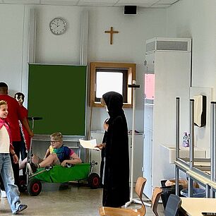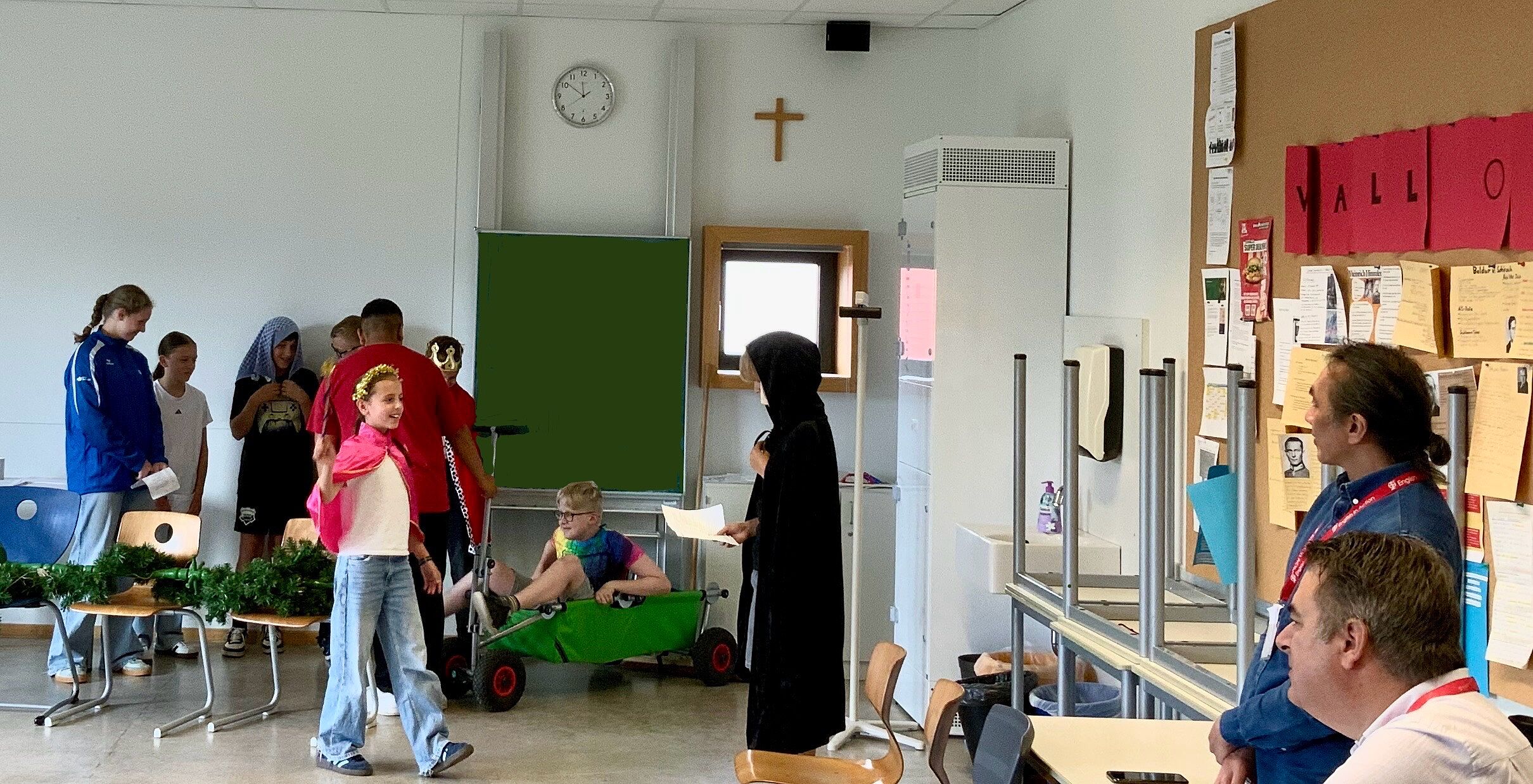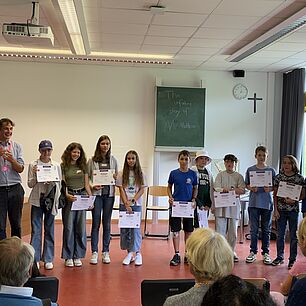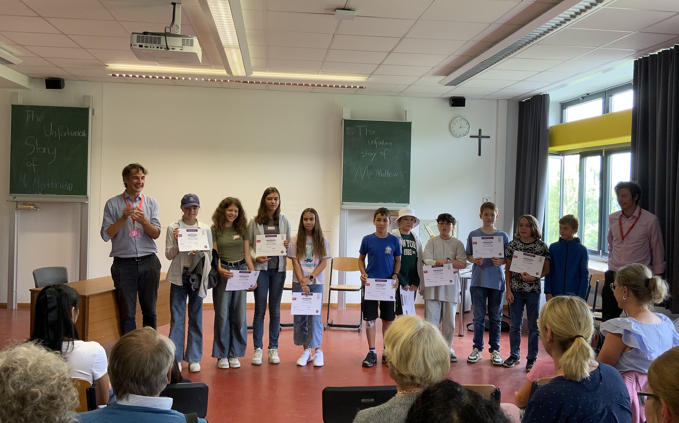 „English only past this point“ - so lautete auch in diesem Schuljahr wieder die Herausforderung unserer muttersprachlichen Lehrkräfte aus Canterbury an den Klassenzimmertüren. Ganze 98 Schülerinnen und Schüler aus den 6. Klassen und der Klasse 7a nahmen diese Herausforderung gerne an und stellten fest, dass sie nach nur zwei Lernjahren, die Klasse 6a sogar nach nur einem Lernjahr, schon ausschließlich auf Englisch kommunizieren können. In dem dreitätigen Sprachprojekt, das in der letzten Juliwoche stattfand, lag der Fokus insbesondere auf der mündlichen Sprachproduktion, aber auch ein vertiefter Einblick in die britische Kultur und motivierende Sprachspiele kamen nicht zu kurz. Ganz besonders begeistert waren alle Teilnehmenden beim Einstudieren kleiner Sketche, die sie ihren Eltern zum Abschluss mit Stolz präsentierten. So bereiteten diese drei Tage allen Schülerinnen und Schülern viel Spaß und stärkten das Vertrauen in die eigene Sprachkompetenz.