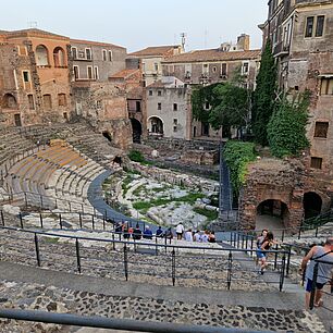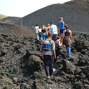 Dienstag, 14.326 Schritte: Früh am Morgen beginnt die Busfahrt Richtung Etna. Unser erstes Ziel ist die Besichtigung einer Höhle. Anschließend erklimmen wir den Vulkan und besichtigen mehrere Krater, wobei uns hier eine stark angepriesene Weinprobe motiviert. Diese enttäuscht uns nicht, da einige Teilnehmer gewisse Nachwirkungen noch am nächsten Tag spüren. Am Nachmittag bekommen wir noch eine kleine Stadtführung durch Catania. Den Abend lassen wir in einem echten Feinschmeckerrestaurant ausklingen.