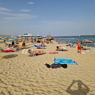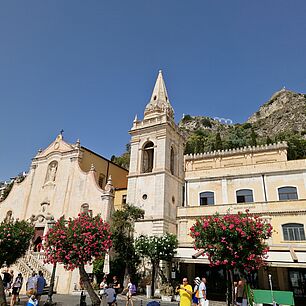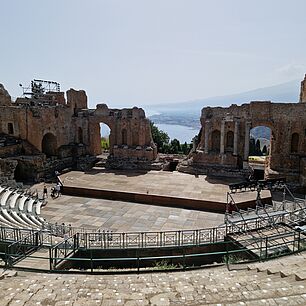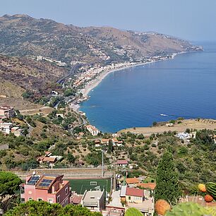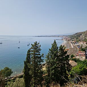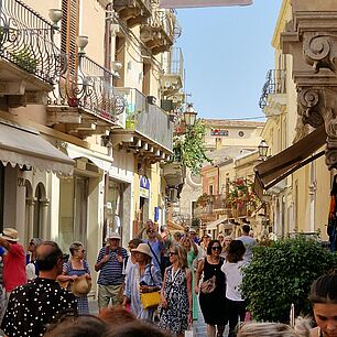 Montag, 17.378 Schritte: Am Vormittag werden erneut viele Höhenmeter bewältigt, was den mittlerweile erfahrenen und gut ausgestatteten Teilnehmern nichts anhaben kann. Als das Bergdorf Taormina erreicht wird, unternehmen wir eine Stadtführung mit anschließendem Restaurantbesuch. Unsere männlichen Teilnehmer können den Cataniatrikots im Schaufenster nicht widerstehen. Highlight des Tages war selbstverständlich der Besuch eines antiken Theaters. Im Anschluss statten wir dem schönsten „Sand“strand der Insel einen Besuch ab, wo das Verlassen des Meeres Balancierübungen ähnelte.