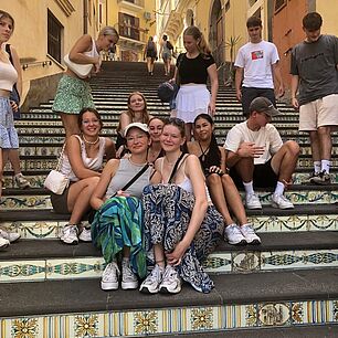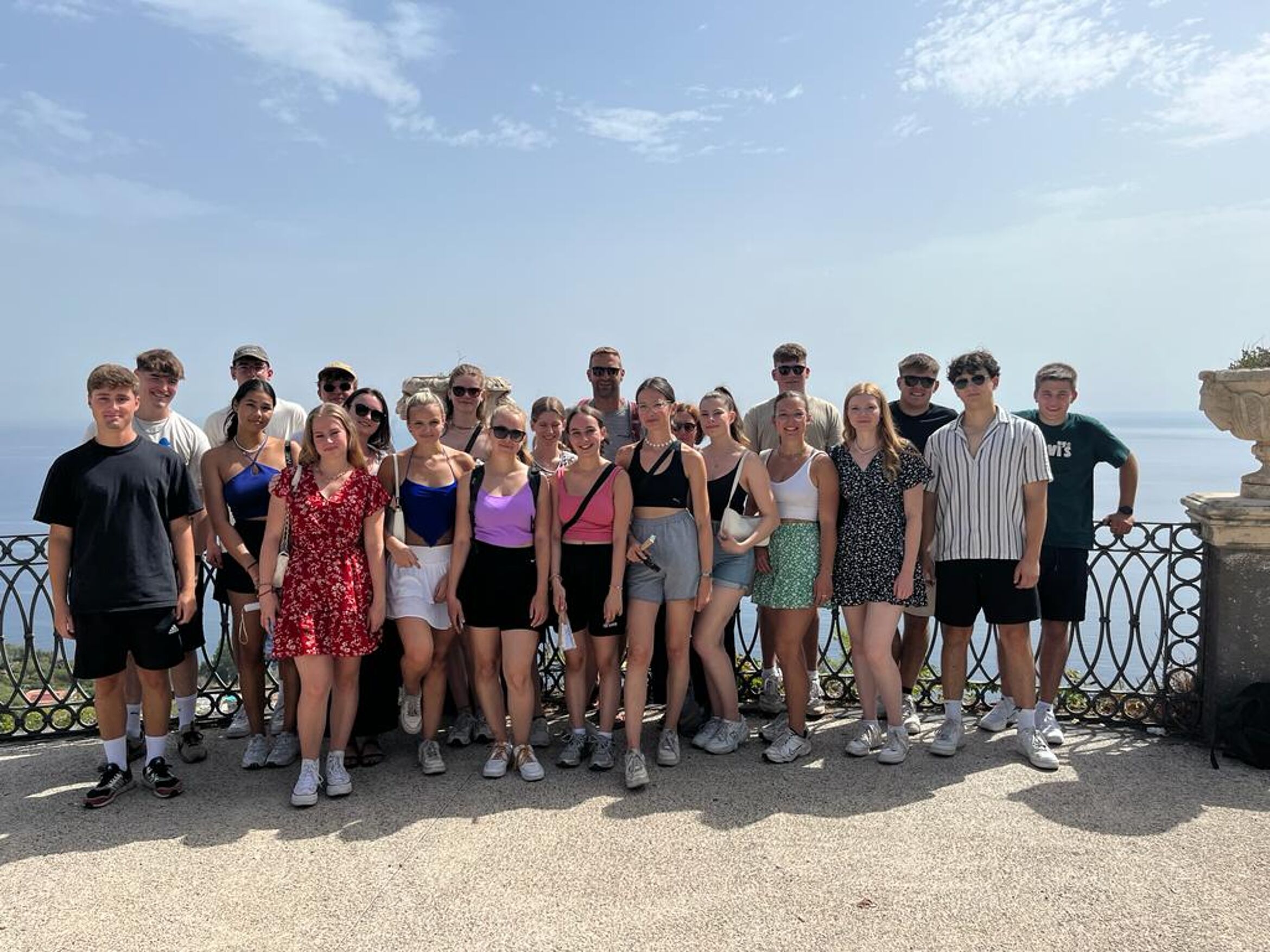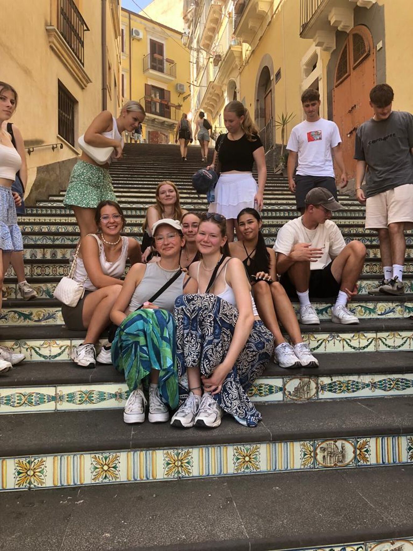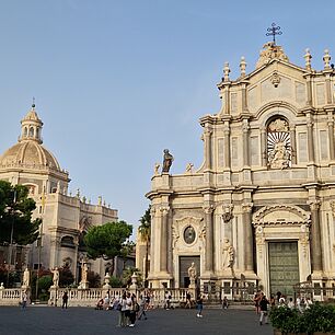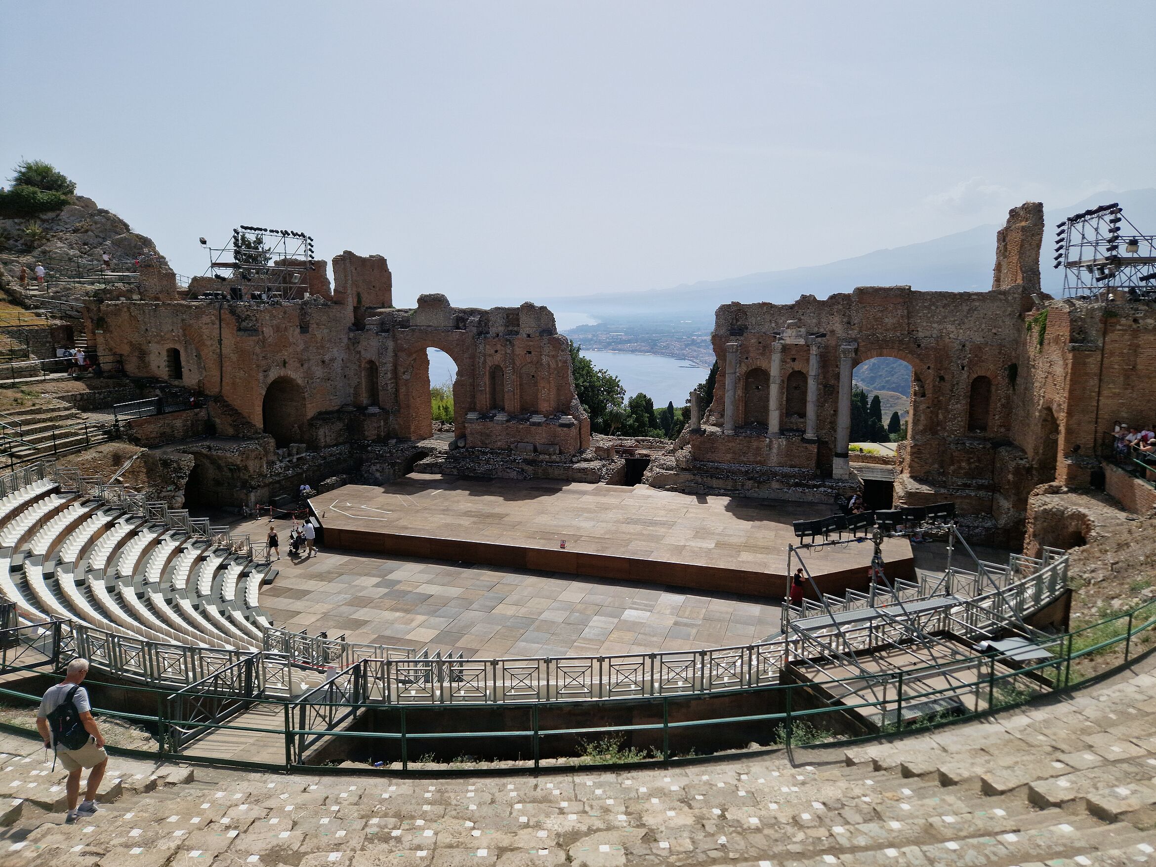 Samstag, 16.09.2023 um 5:00 Uhr: Topfit und gut gelaunt begibt sich die dezimierte Mannschaft zum Check-in am Frankfurter Flughafen. Nach einer letzten Stärkung meistern wir diese Aufgabe souverän und nehmen unsere Plätze im Flieger ein. Zwei Stunden später landen wir in Palermo und unsere Busreise nach Catania beginnt. Nach 3 1/2 Stunden Fahrt und einem kurzen Fußmarsch erreichen wir unsere Unterkunft für die nächste Woche. Von Außen wirkt die Unterkunft unscheinbar und optisch wenig ansprechend, von Innen jedoch erweist sie sich als ein wahrhaftiges Schmuckstück. Durch die Verteilung unserer Zimmer im dritten Stock der Unterkunft werden unsere Beine zum ersten Mal gefordert, wie auch in der restlichen Woche unserer Studienfahrt (im Durchschnitt 17.000 Schritte pro Tag). Aber fangen wir erstmal am Anfang an.