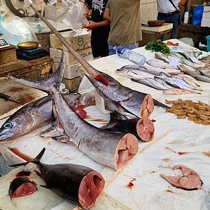 Freitag, 16.320 Schritte: An unserem letzten Tag schlendern wir frohen Mutes über den Fischmarkt in Catania, nachdem wir die Ehre hatten, im Zuge einer weiteren Stadtfürhung durch Catania auch die letzte verbleibende Kirche von Innen bestaunen zu dürfen. Abends lassen wir uns von einem Hochgeschwindigkeitszug noch einmal durch die Straßen von Catania kutschieren. Im Anschluss lassen wir den letzten Abend auf Sizilien in unserer Bar gemütlich ausklingen.