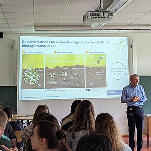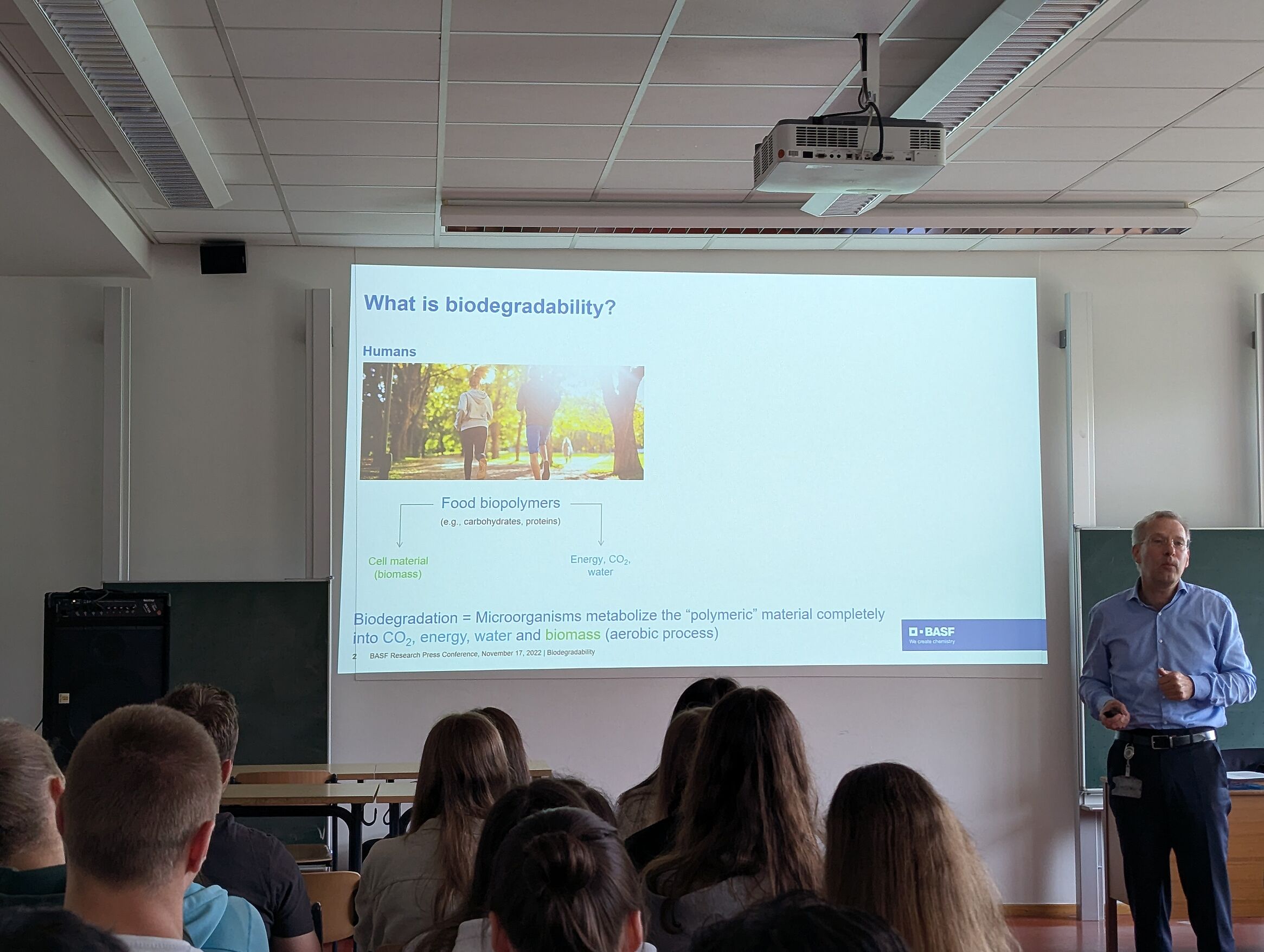 Vortrag und Austausch mit Spitzenvertreter zum Thema nachhaltiges und abbaubares Plastik mit Vertreter von BASF - Am 04.07. kam Prof. Andreas Künkel, Vice President der BASF AG und Professor an der Philipps-Universität Marburg zu Besuch ans SGA.