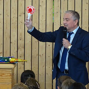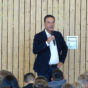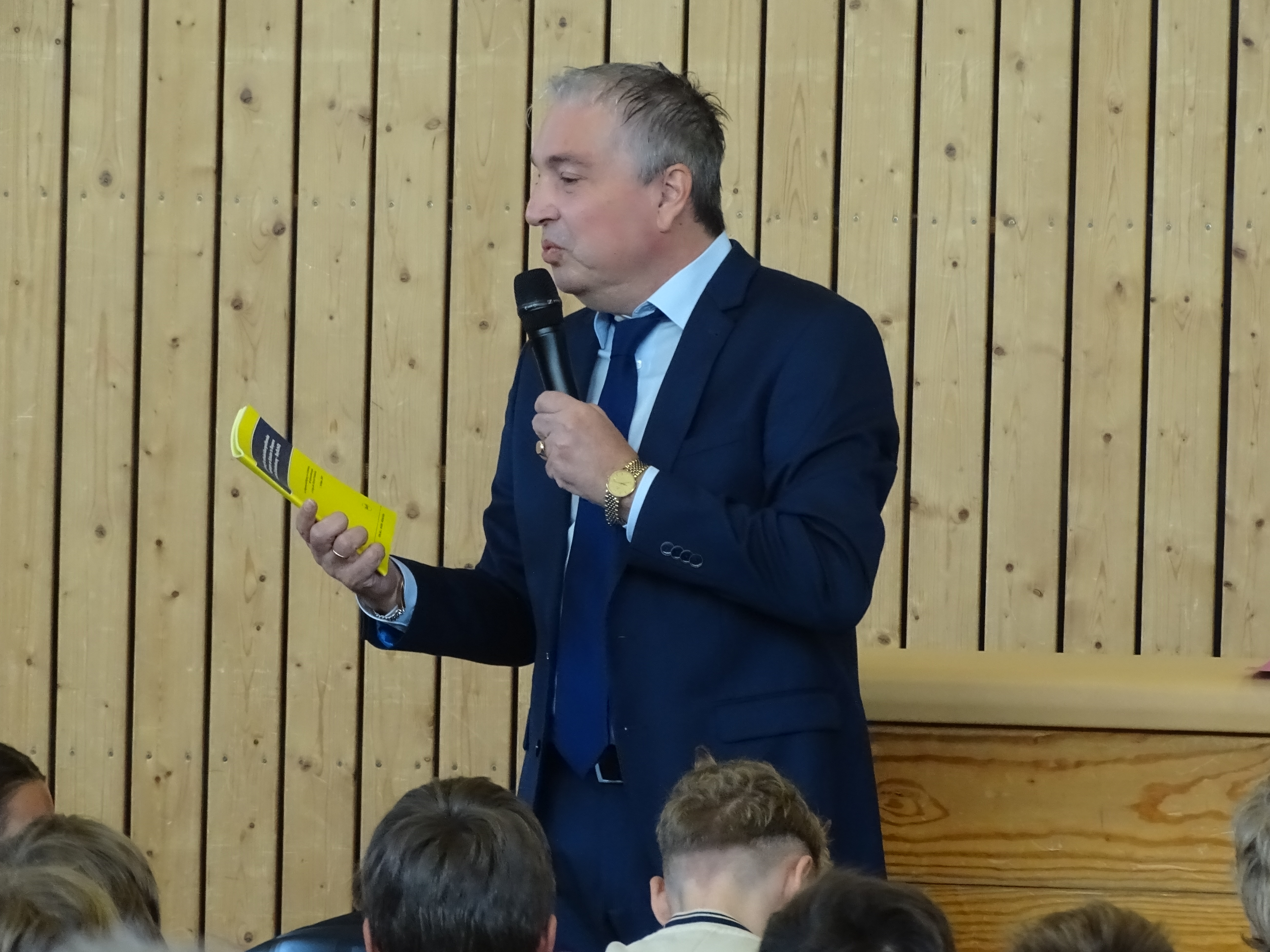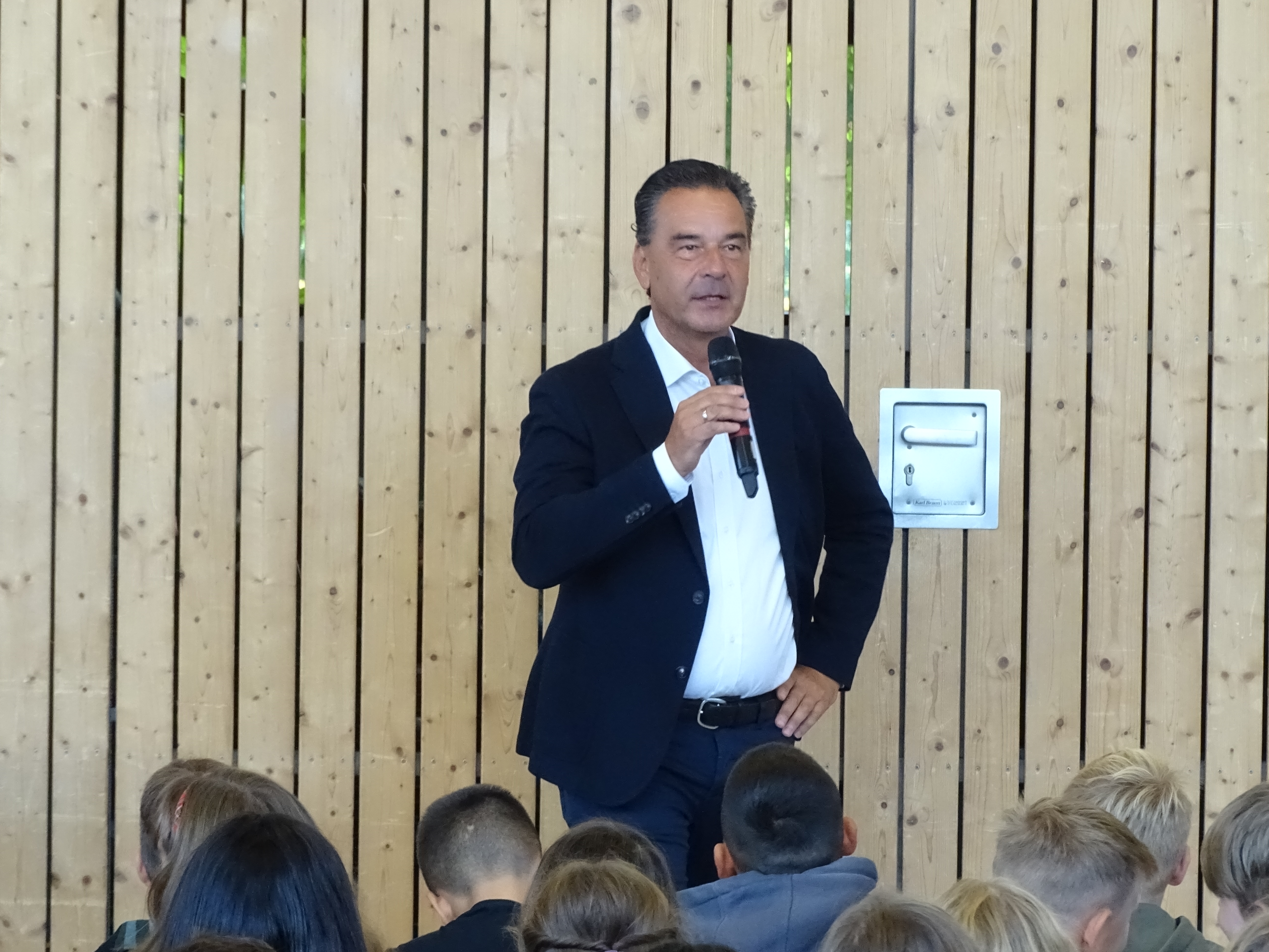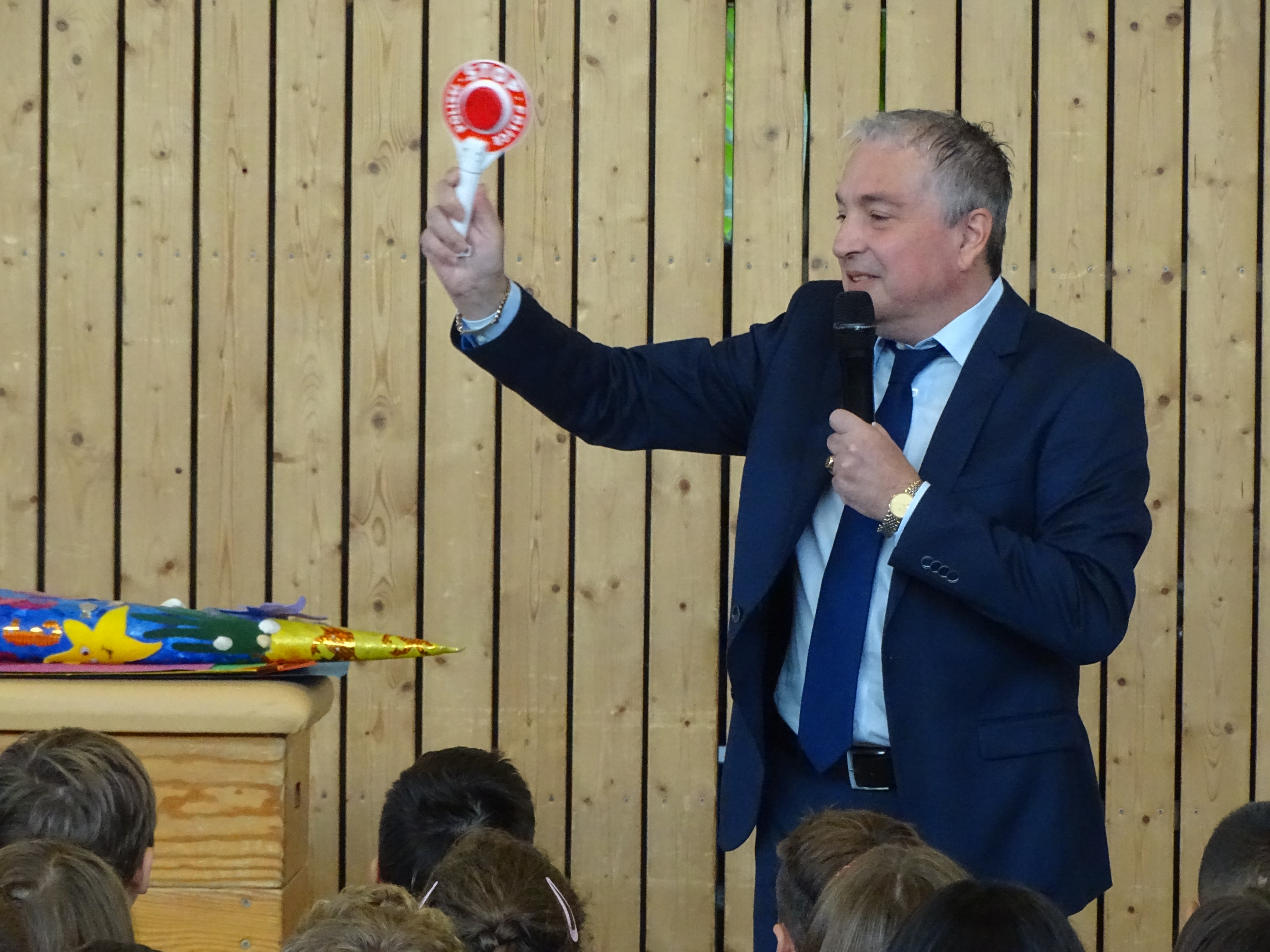 Der Beginn eines Schuljahres ist immer aufregend und ein besonderer Tag, vor allem natürlich für die neuen Fünftklässler. Bei blauem Himmel, Sonnenschein und viel frischer Luft begrüßte die Schulfamilie, allen voran der Schulleiter Herr Ribeca und die Unterstufenkoordinatorin Frau Wissel, aber auch der Alzenauer Bürgermeister, die Vorsitzenden des Elternbeirats und des Freundeskreises ihre neuen Mitglieder.