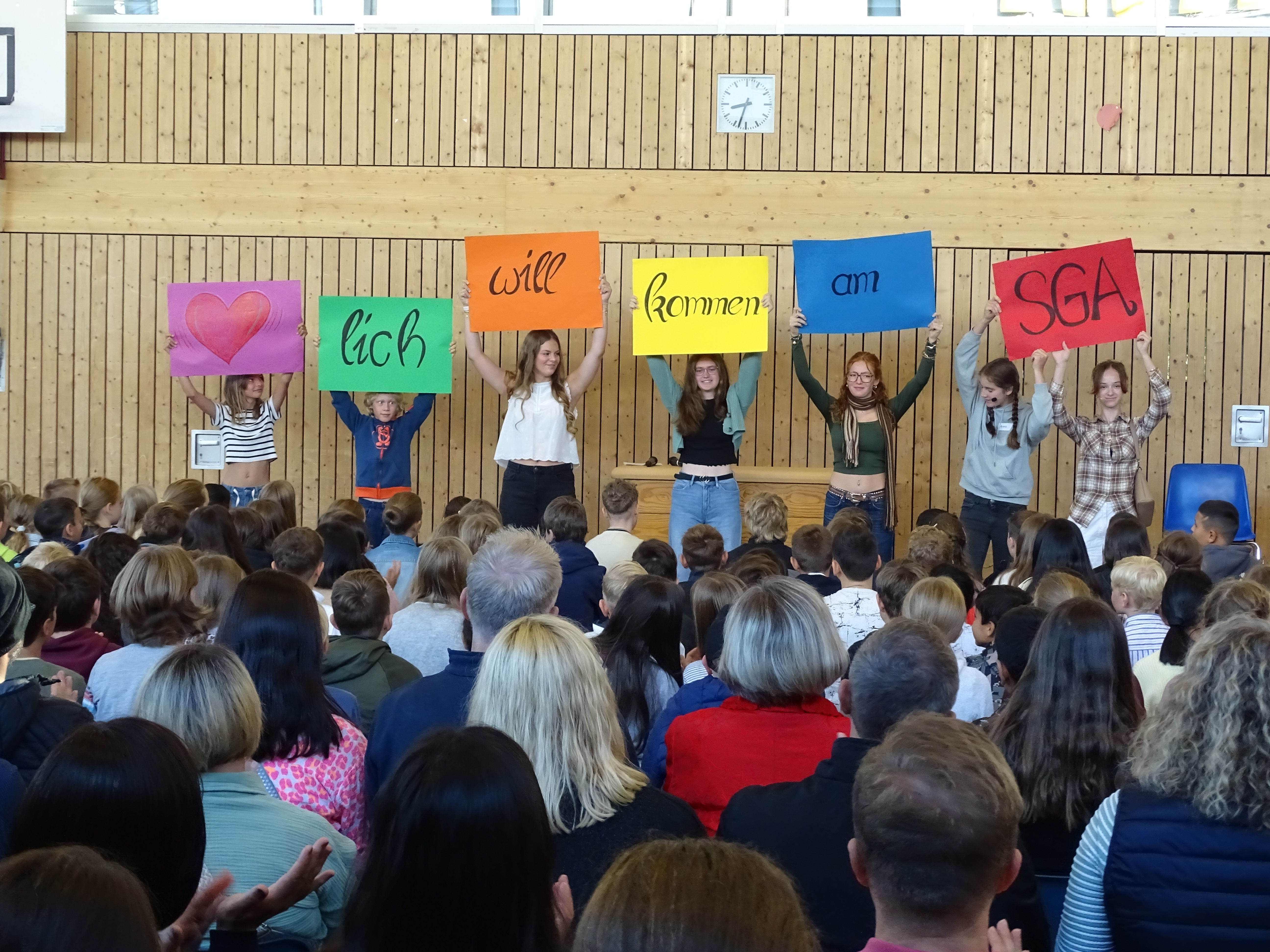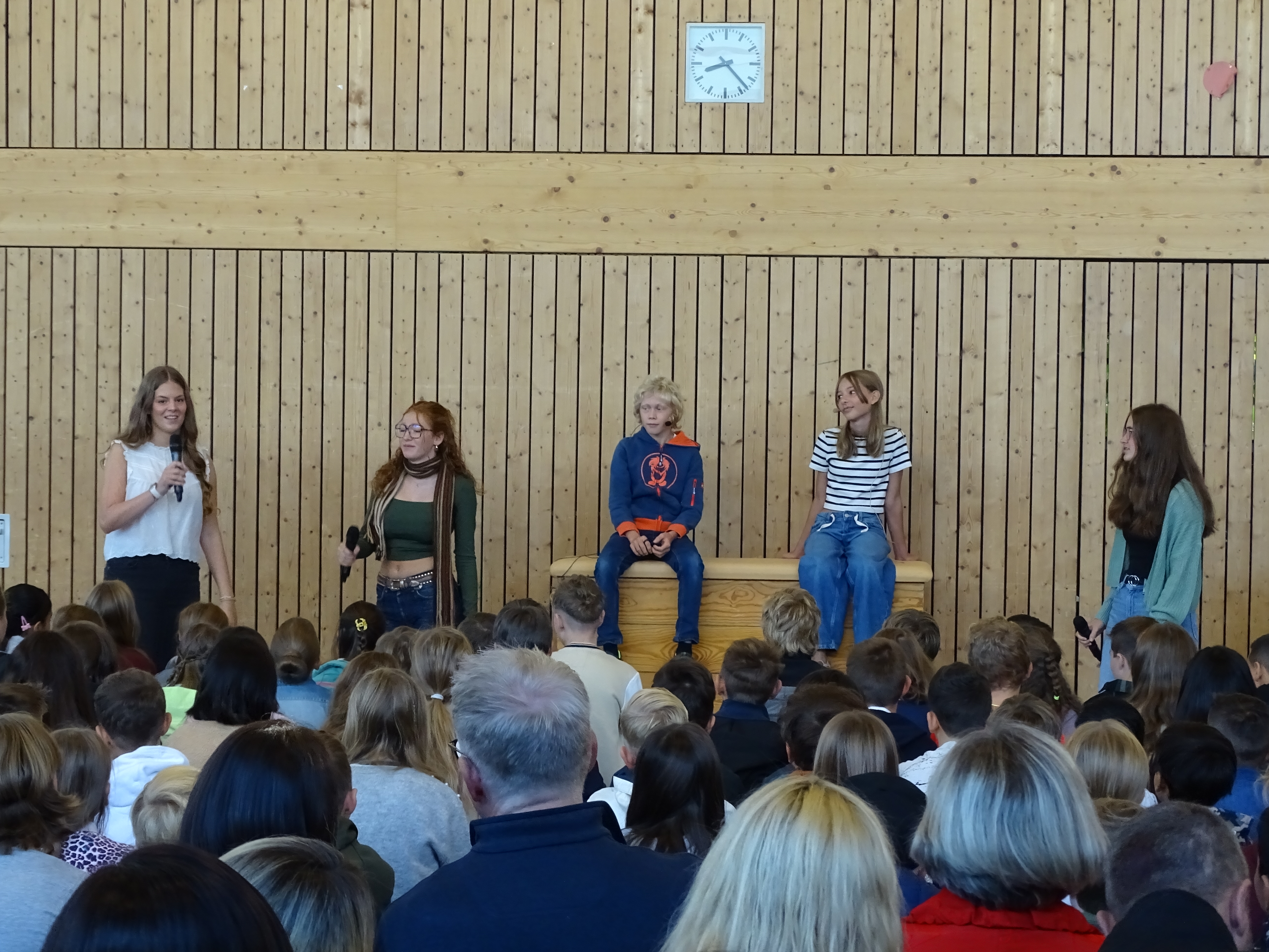 Bei der kleinen Feier lernten die fünften Klassen auch ihre Klassenleiter und Tutoren kennen, die sie beim Übertritt an die neue Schule begleiten und ihnen mit Rat und Tat beistehen werden. Die Tutoren waren es zudem, die mit einem tollen Sketch für einen lockeren Auftakt sorgten und das ganze Publikum erheiterten.