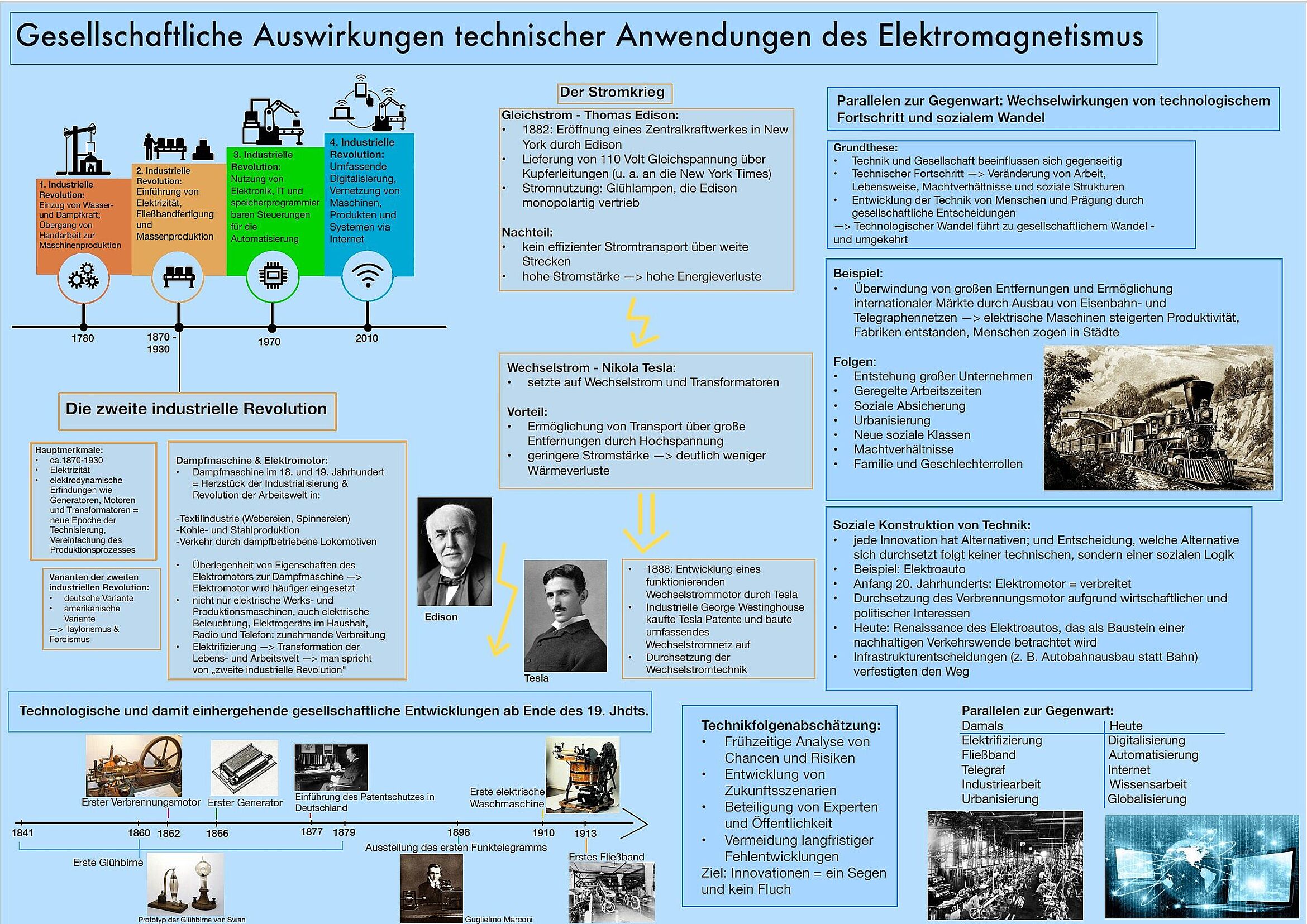 Zur Vertiefung des Lernstoffes zum Elektromagnetismus und zur Weiterentwicklung ihrer prozessbezogenen Kompetenzen haben die Schülerinnen und Schüler der Klassen 10 b und 10 d in den Profilstunden des naturwissenschaftlich-technologischen Zweigs anhand des Studiums von vorgegebenen Quellen sich diesen Themen gewidmet und ihre so gewonnenen Erkenntnisse auf digital am Ipad erstellten Plakaten möglichst professionell und sachgerecht dargestellt. So haben sie sich neben den Inhalten auch mit der Kommunikation von Wissen durch Reduktion auf das Wesentliche bei gleichzeitiger inhaltlicher Vollständigkeit und fachlicher Verständlichkeit, unterstützt durch geeignete Visualisierungen und eine angemessene Strukturierung, beschäftigt.