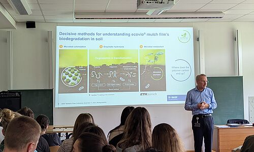 Vortrag und Austausch mit Spitzenvertreter zum Thema nachhaltiges und abbaubares Plastik mit Vertreter von BASF - Am 04.07. kam Prof. Andreas Künkel, Vice President der BASF AG und Professor an der Philipps-Universität Marburg zu Besuch ans SGA.