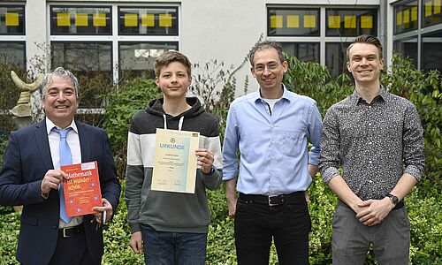 Jonathan Geier aus der 8. Jahrgangsstufe ist es gelungen, nicht nur in der ersten Runde des Landeswettbewerbs Mathematik volle Punktzahl zu erreichen, sondern auch noch in der zweiten und damit letzten Runde. Er wurde als Landessieger mit einem Buchpreis ausgezeichnet und zu einem Mathe-Seminar in…